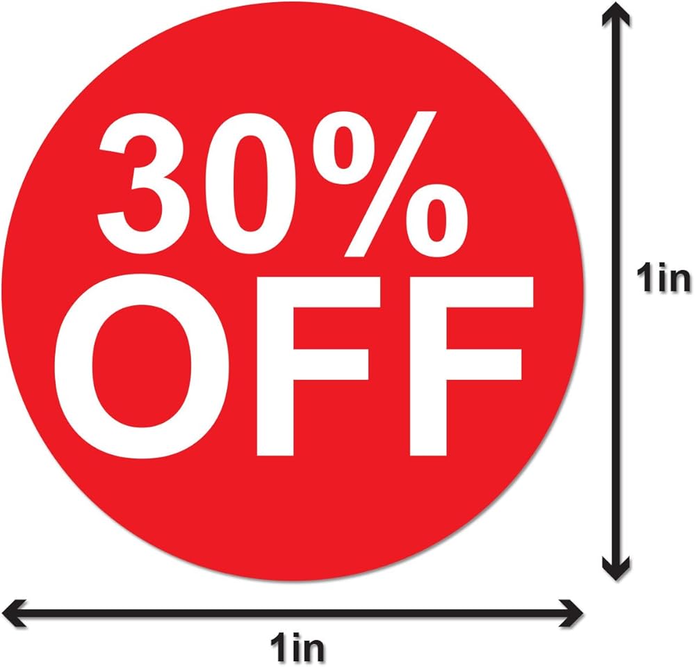 [FUNCTIONALITY] Immediate eye catching vibrant red 30% off stickers labels in high resolution; Ideal to clear out old inventory for new arrivals; Perfect for retail store