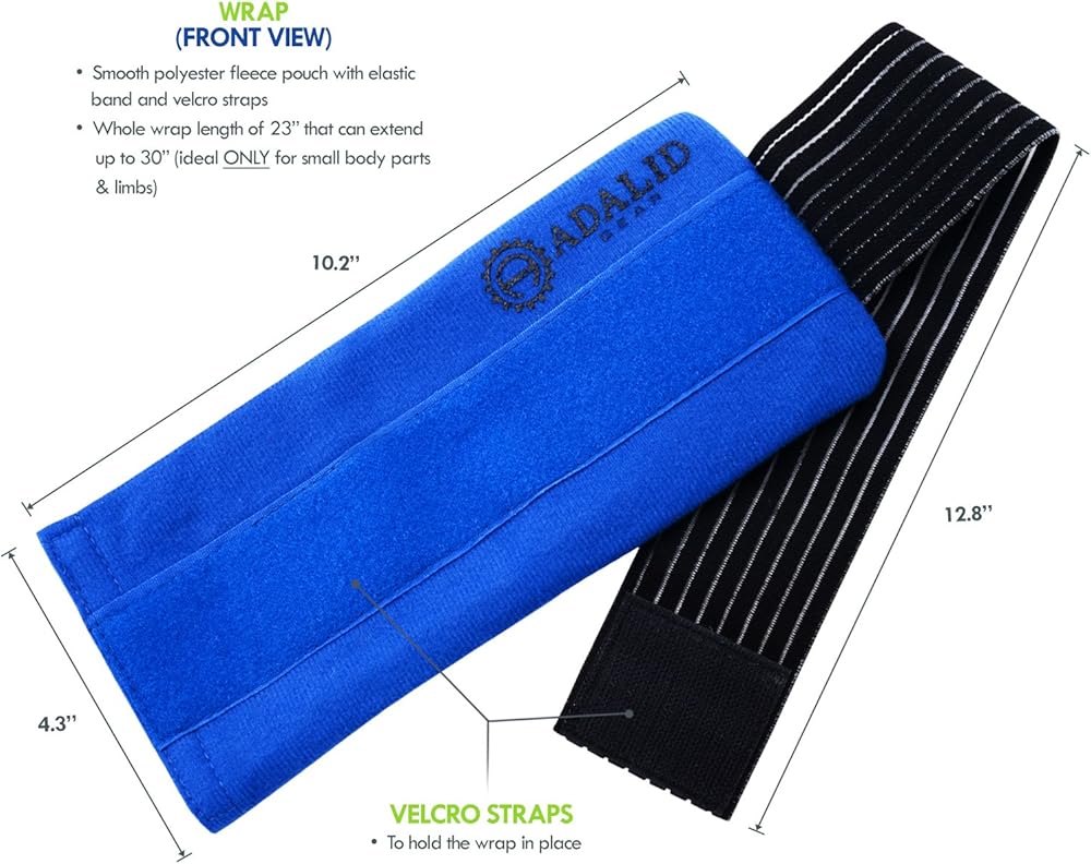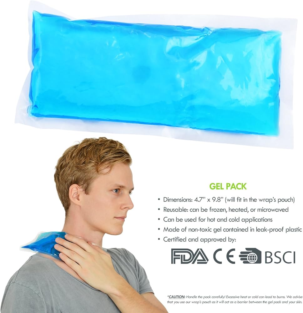 ✓ The wrap comfortably keeps a gel ice pack in place on any part of your body or limb during hot or cold therapy — for ease-of-use and mobility.
