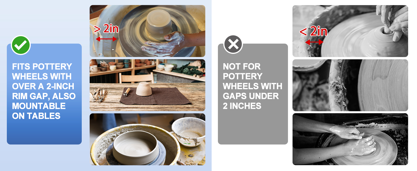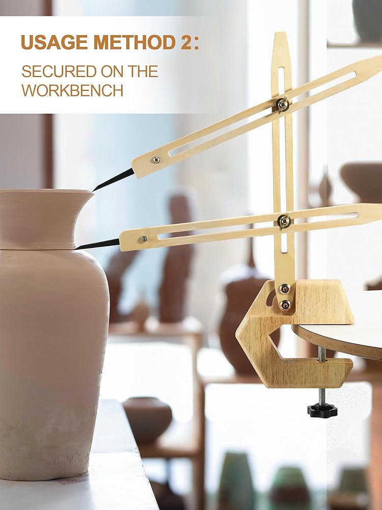 FLEXIBLE 2 INSTALLATION METHODS: Pottery throwing gauge offers 2 mounting methods. It can be securely clamped to various pottery wheels, reducing operational distance and increasing the reach of your arms, or it can be affixed to a workbench to ensure ultimate stability and prevent vibrations caused by accidental touches. These 2 approach accommodates different studio layouts and meets the needs of artists.