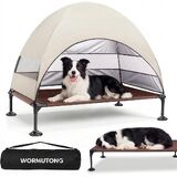 Elevated Outdoor Dog Bed with Canopy, Raised Dog Cot with Stable Adjustable Feet, Dog Camping Bed with Larger Shade, Lifted Dog Tent Bed with Canopy for Outside (Beige, Large)