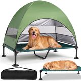 【High Density & Easy to Clean】 The off-ground outdoor dog canopy bed is made of high density teslin material, long-lasting and comfortable. And it is also chew-proof, and easy to clean, just wipe it down or rinse it with a hose. In addition, it prevents pet hair from sticking and keeps the outdoor dog tent bed tidy.