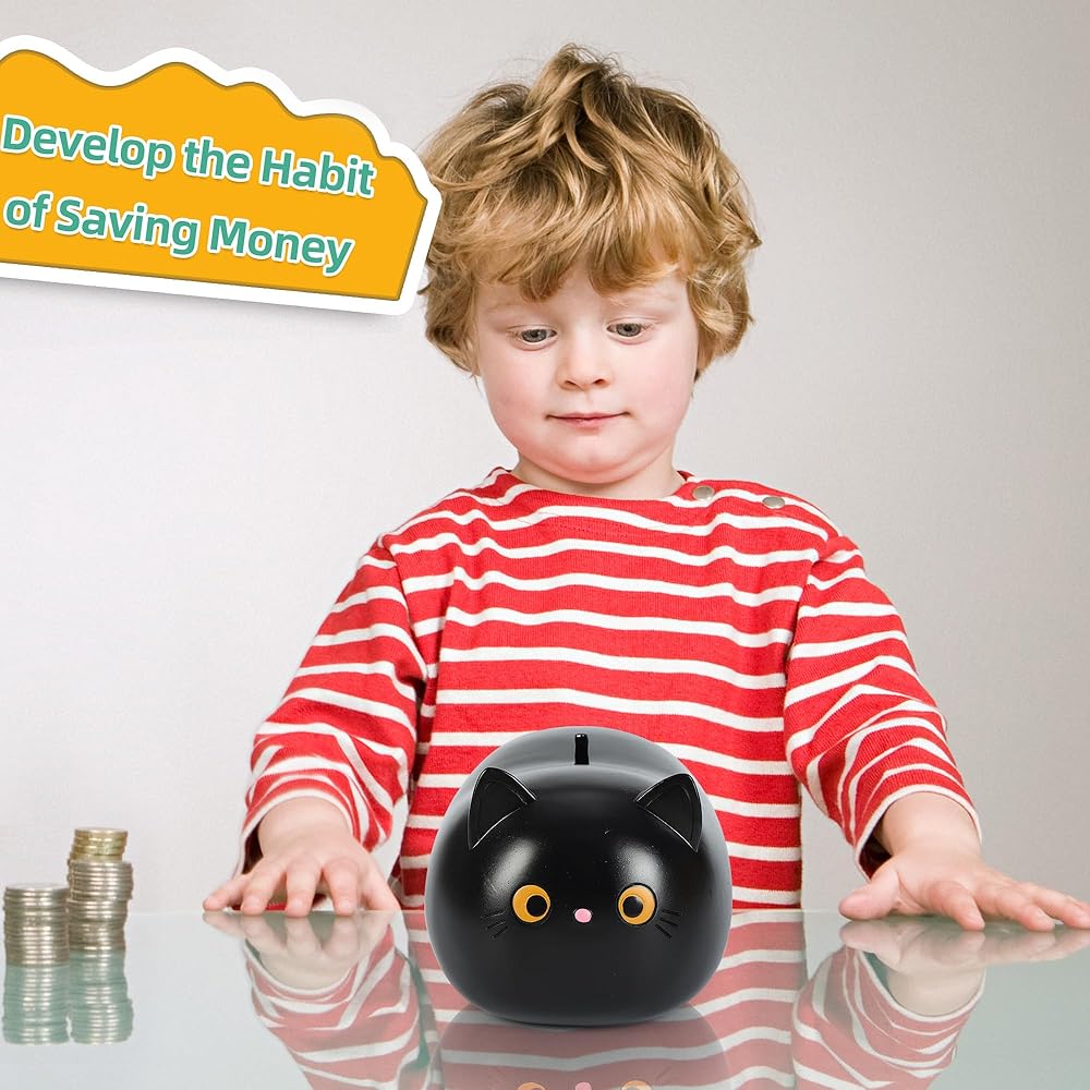 This cute kitty money banks is a tool for children and families to incorporate strong financial values and practices into their daily lives!As black cat piggy bank for girls,suitable for birthday gifts,christmas gifts,baby gifts, children's prizes,etc.At the same time,coin banks is not only an ornament,but also a companion of children."