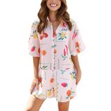 Size chart of women's button down boho short romper: