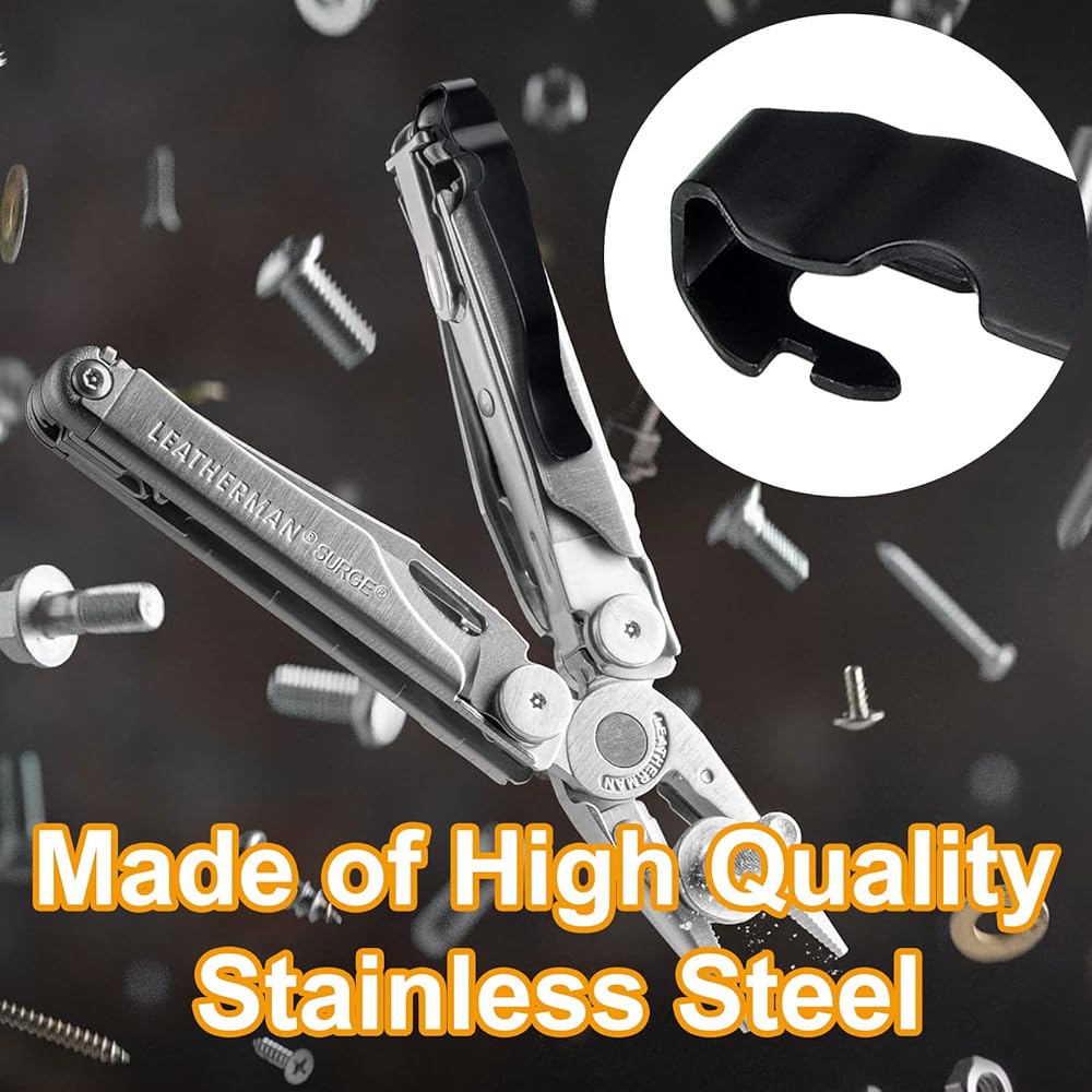 Heavaluefit Durable Pocket Clip for LEATHERMAN Surge, Made of Durable Stainless Steel, Quick Install and Remove Clip Accessories Perfcet for LEATHERMAN Surge (Black)