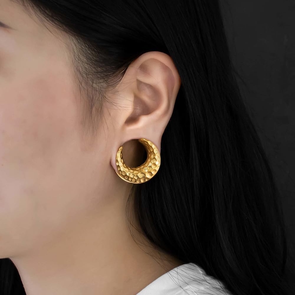 Packed included: one pair of gold Meteorite design ear saddle plugs gauge earrings. Meticulously patterns designed, individual and tasteful, make yourself to be special guy.