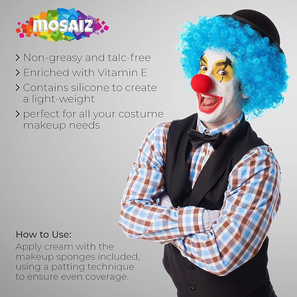 FULL COVERAGE- The Mosaiz White face paint provides a great foundation for costumes makeup, so you will be fully covered