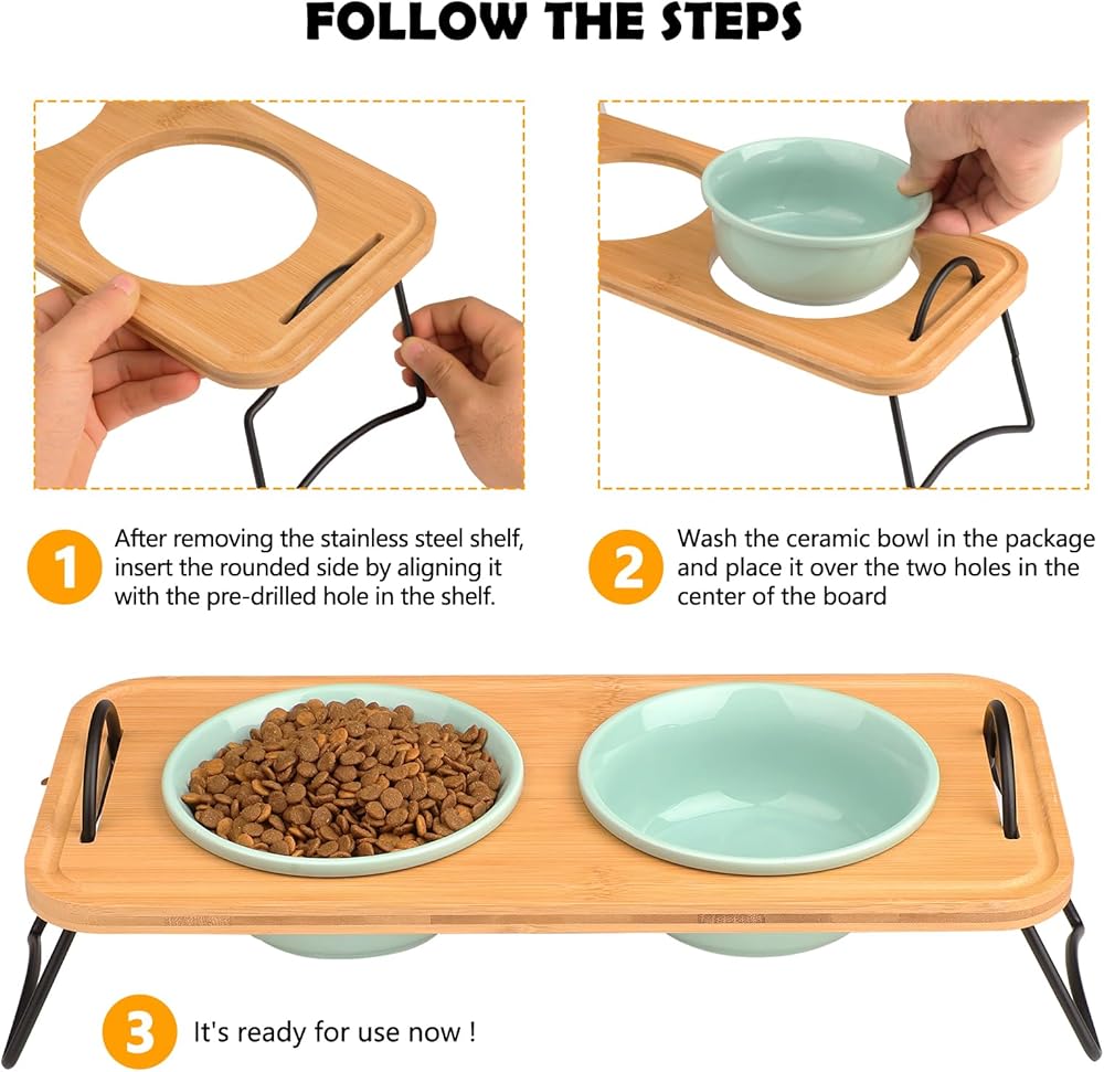 Beautiful and Functional: The elevated cat bowls are designed with a modern and stylish look that will complement any home decor. The sturdy bamboo and stainless steel construction ensures that these cat food and water bowl sets elevated will stand the test of time, remaining sturdy and beautiful for years to come.