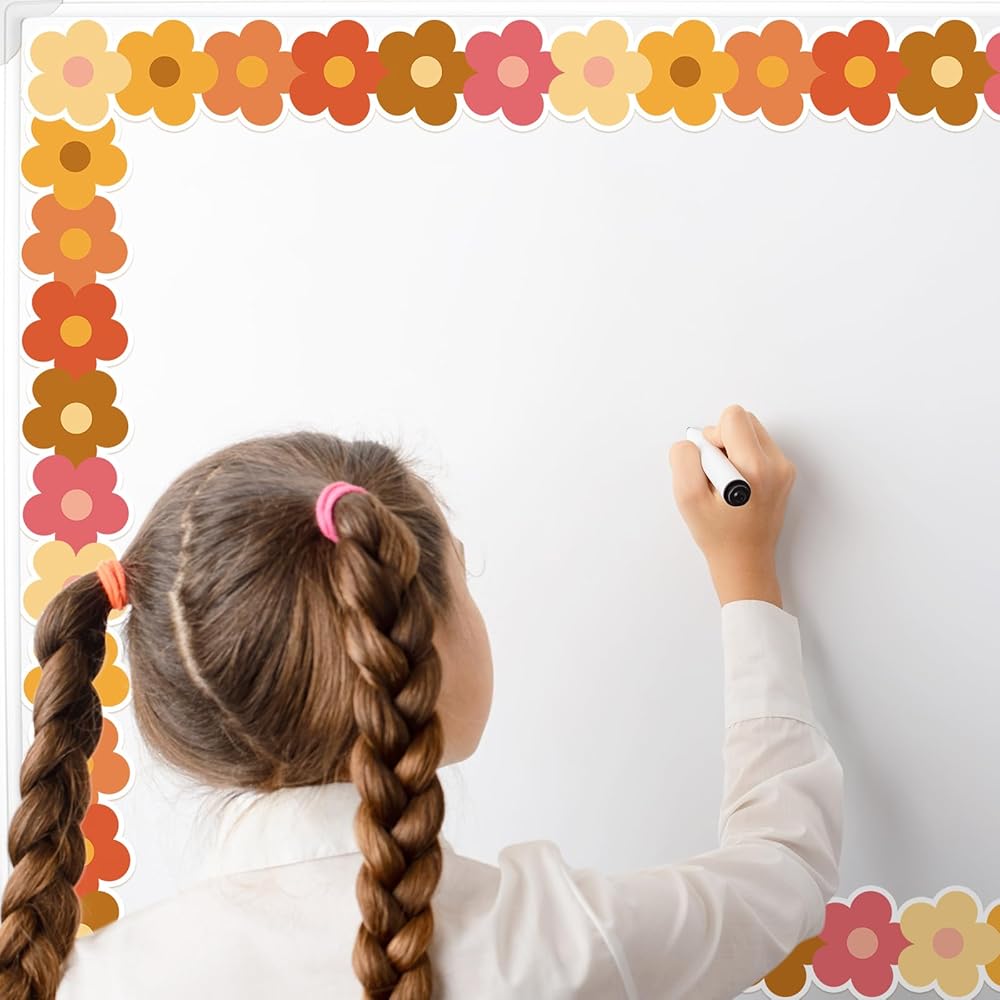 Groovy flower magnetic bulletin board border can create a cheerful atmosphere, perfect for decoration.
