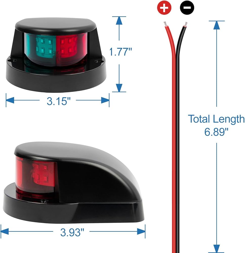 High Visibility Light Signals: The marine red and green lights feature a new optical design, ensuring visibility through fog and light mist, allowing for safe navigation at sea. It meets the USCG requirement for a visibility range of 2 nautical miles.