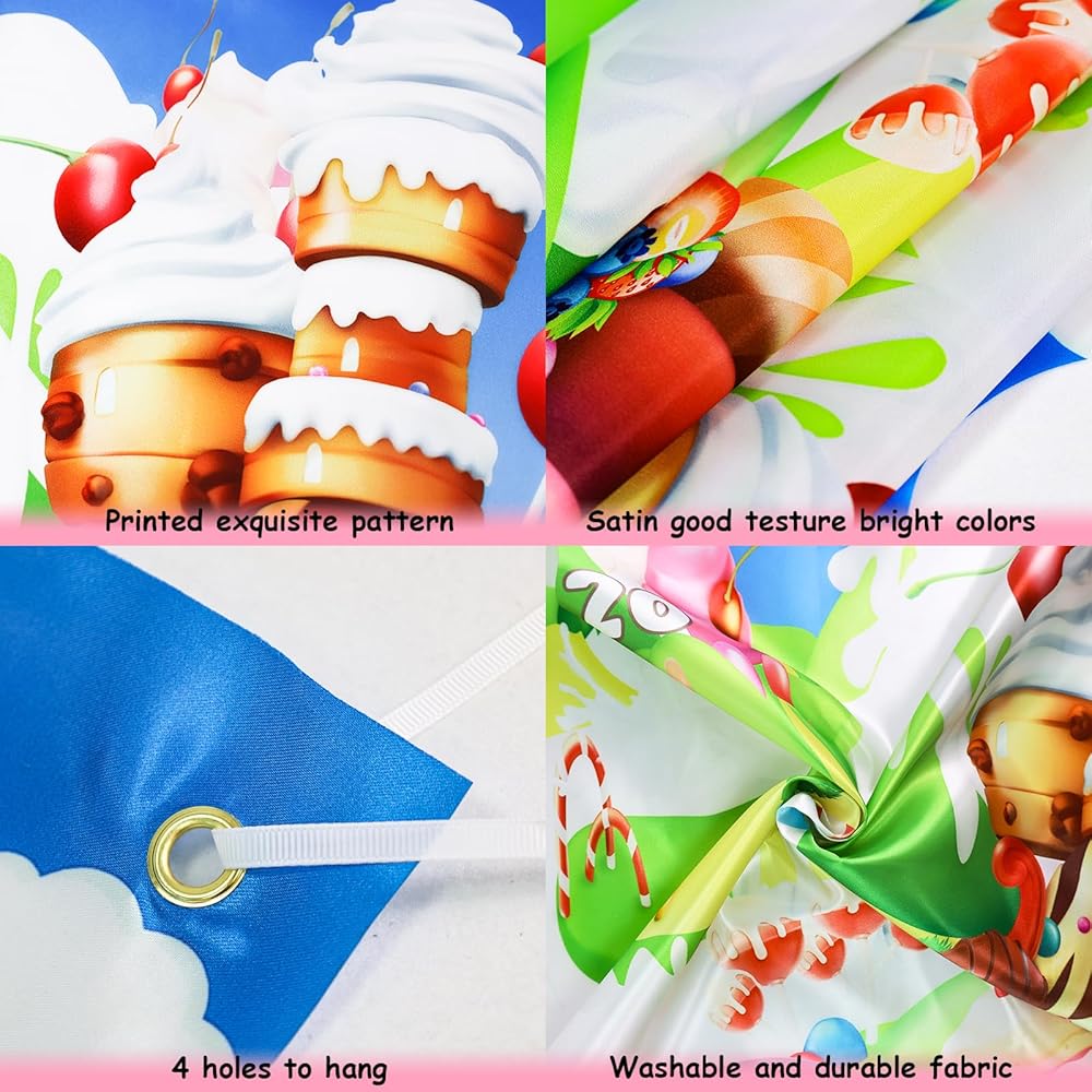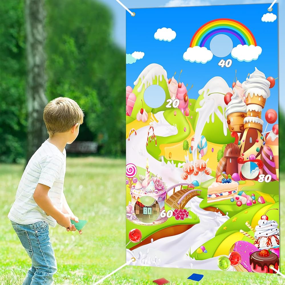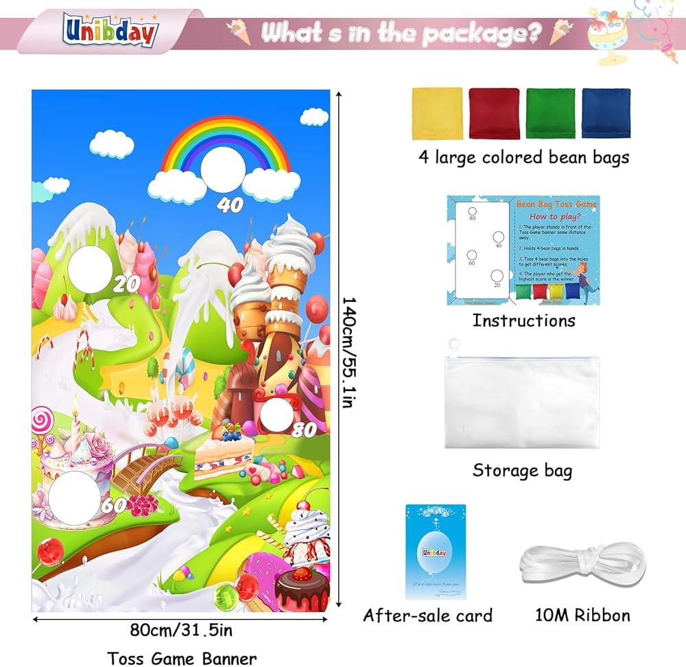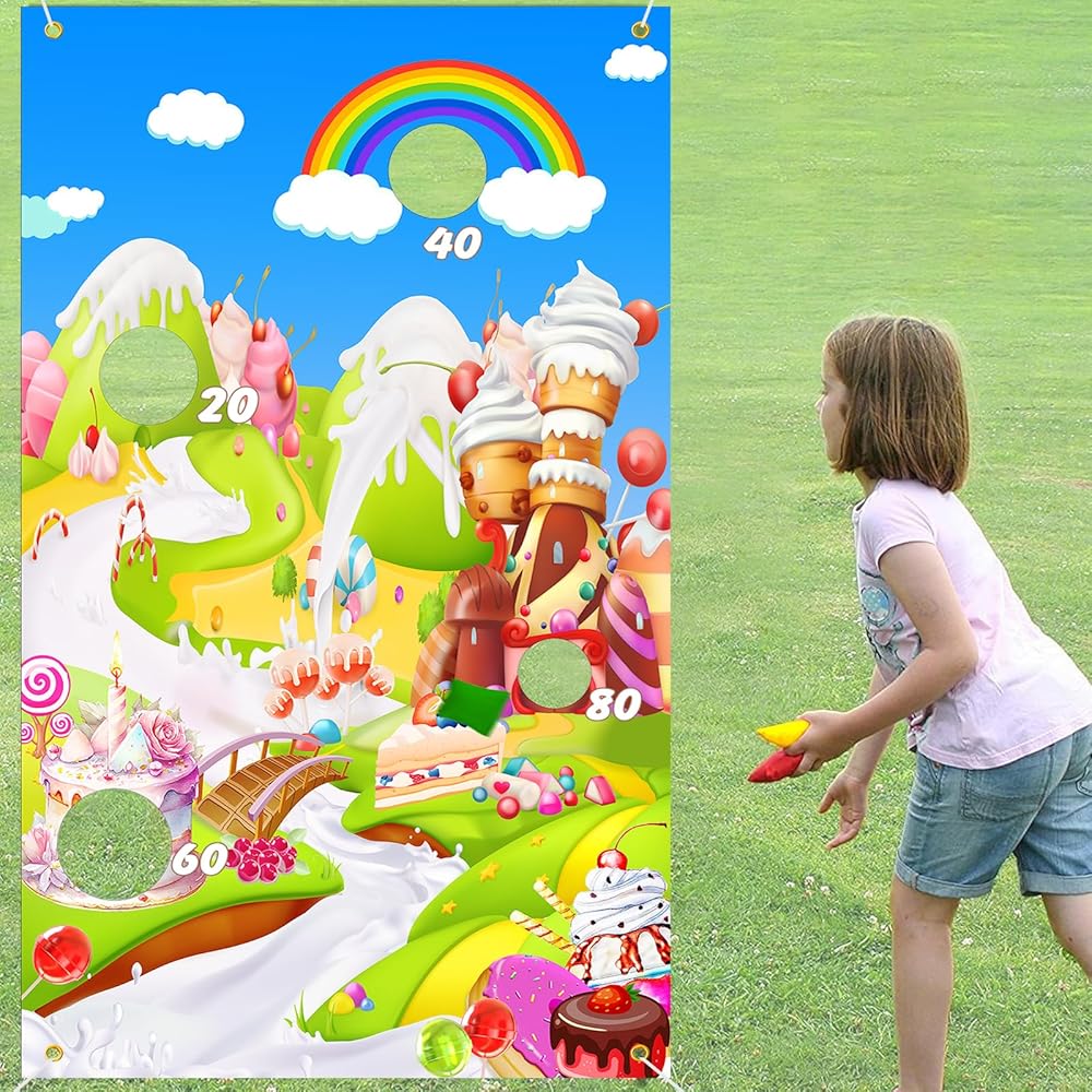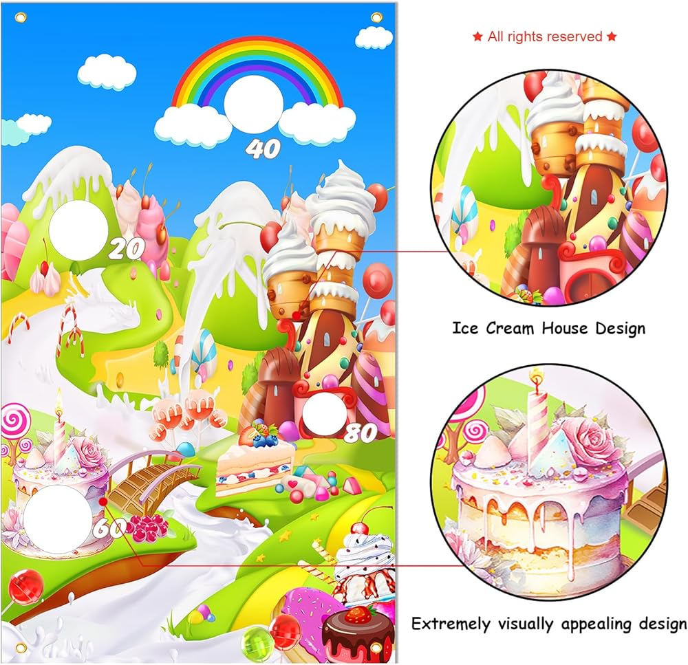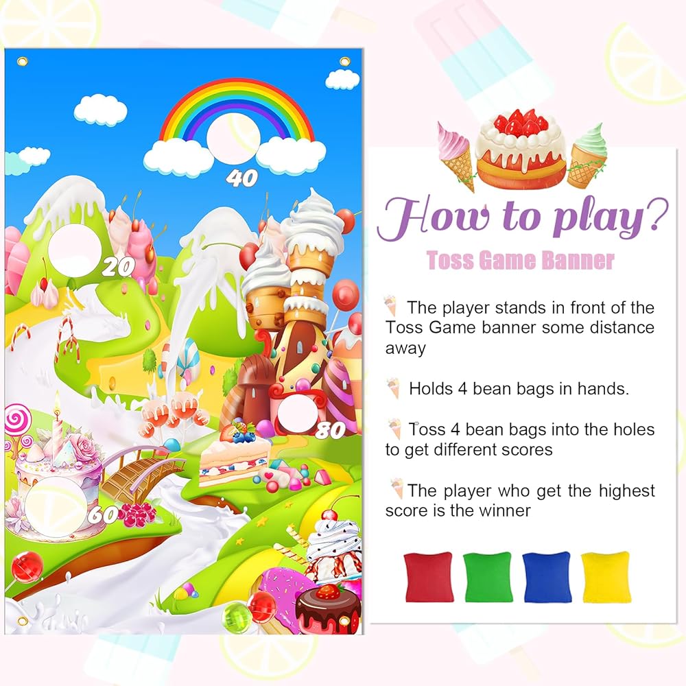 Upgraded, Ice Cream Games, Funny Candyland Game for Kids, with 4 Bean Bags, Premium Ice Cream Backdrop, Accessories and Storage Bag, Ideal Icecream and Candy Land Theme Birthday Party Decorations