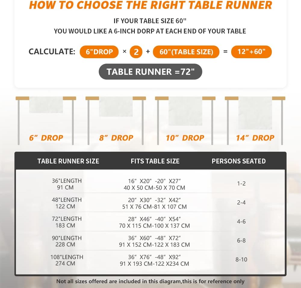 Enhanced table protection: In addition to their stunning design, our table runner provide a practical function by protecting your table from spills and stains. Please note that a heat resistant mat should be placed on top of the table runner to protect your table from heat damage.