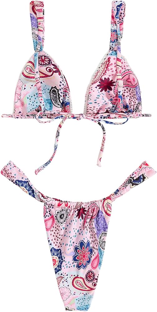 - Features: 2 piece set, floral printed, tie back, smocked, triangle, wireless bra, thongs, spaghetti strap, cute, casual, trendy, lightweight, soft to wear.