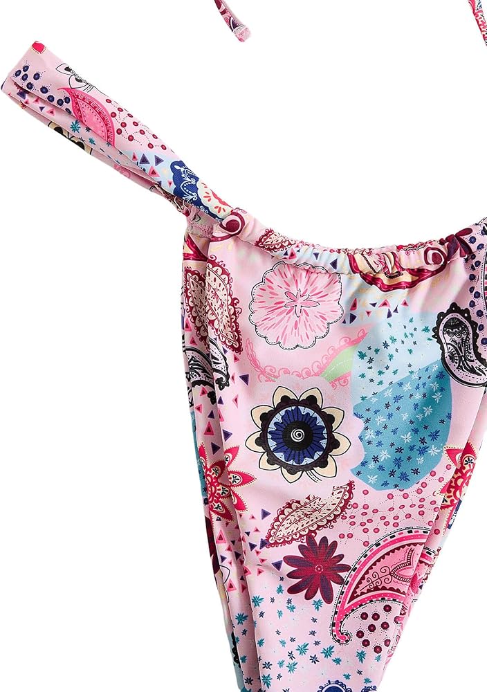 Women's High Waisted Bikini Set Floral Print Spaghetti Strap Smocked Wireless Bathing Suit Swimsuit 2 Piece Set