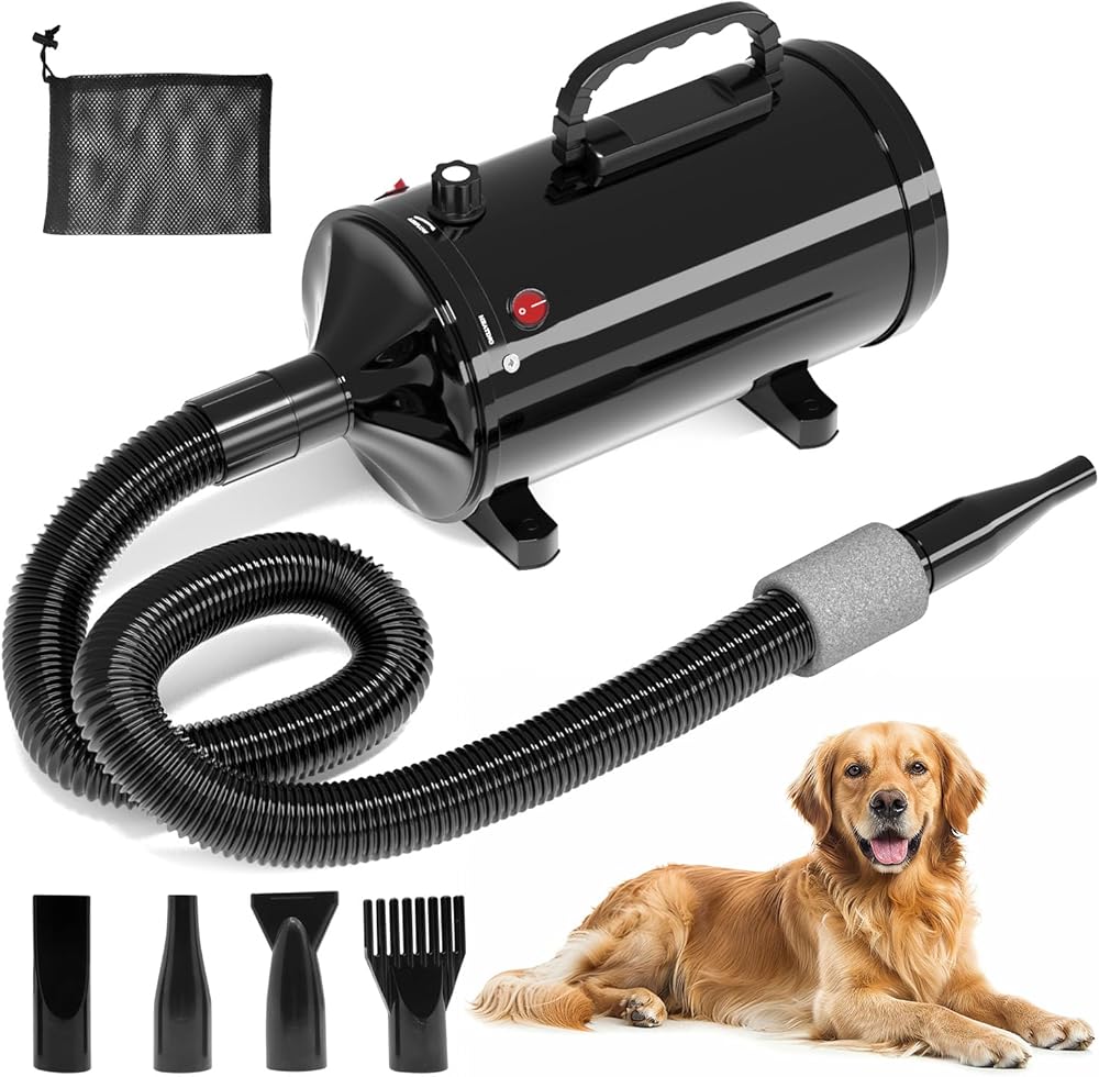 【4 Nozzles & Storage Bag】Our dog blow dryer is equipped with 4 different nozzles to meet all drying needs and create different shapes for your adorable pet. In addition, we present you with an accessory mesh storage bag, which is convenient for storing nozzles and not easy to lose and scatter. It is undoubtedly the best choice for professionals and families!