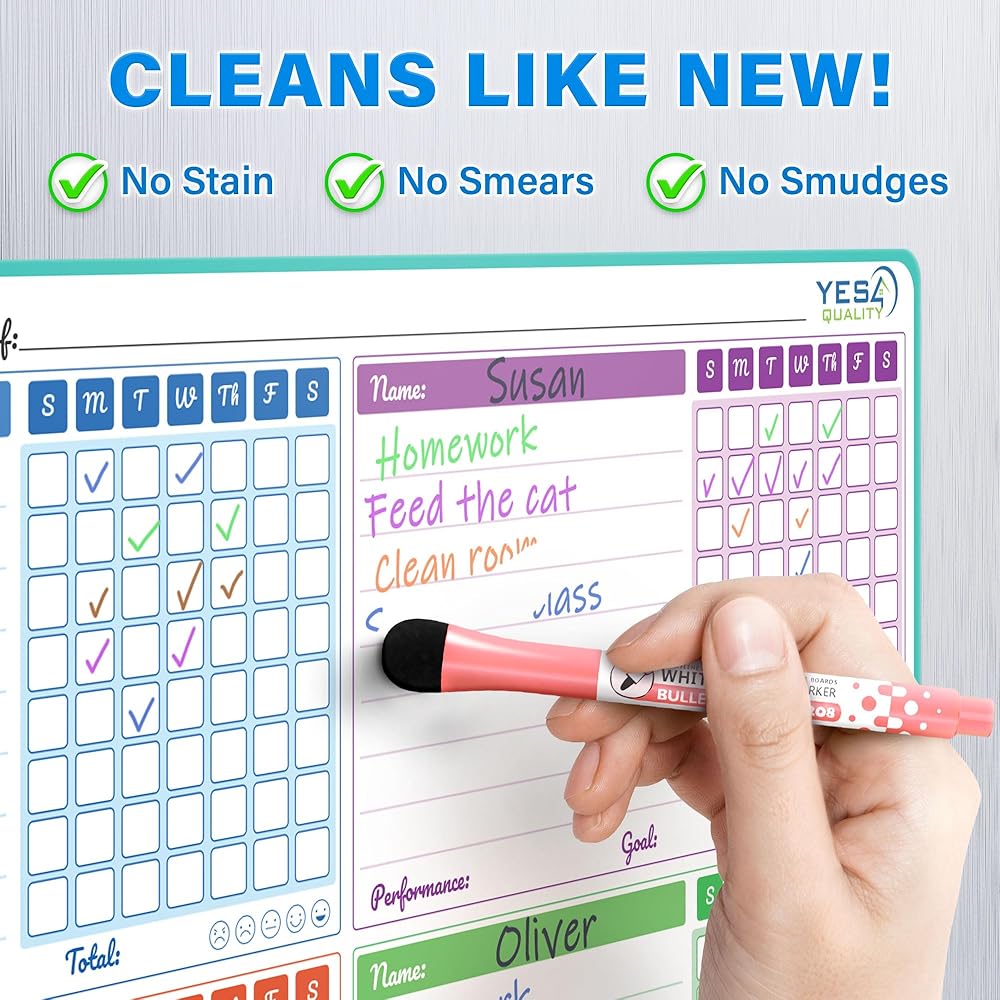 STRONG MAGNETIC BACK - Unlike ordinary whiteboards that become loose over time and fall down, Yes4Quality whiteboards come with a strong industrial magnet that sticks firmly to refrigerator surface, and never slides down
