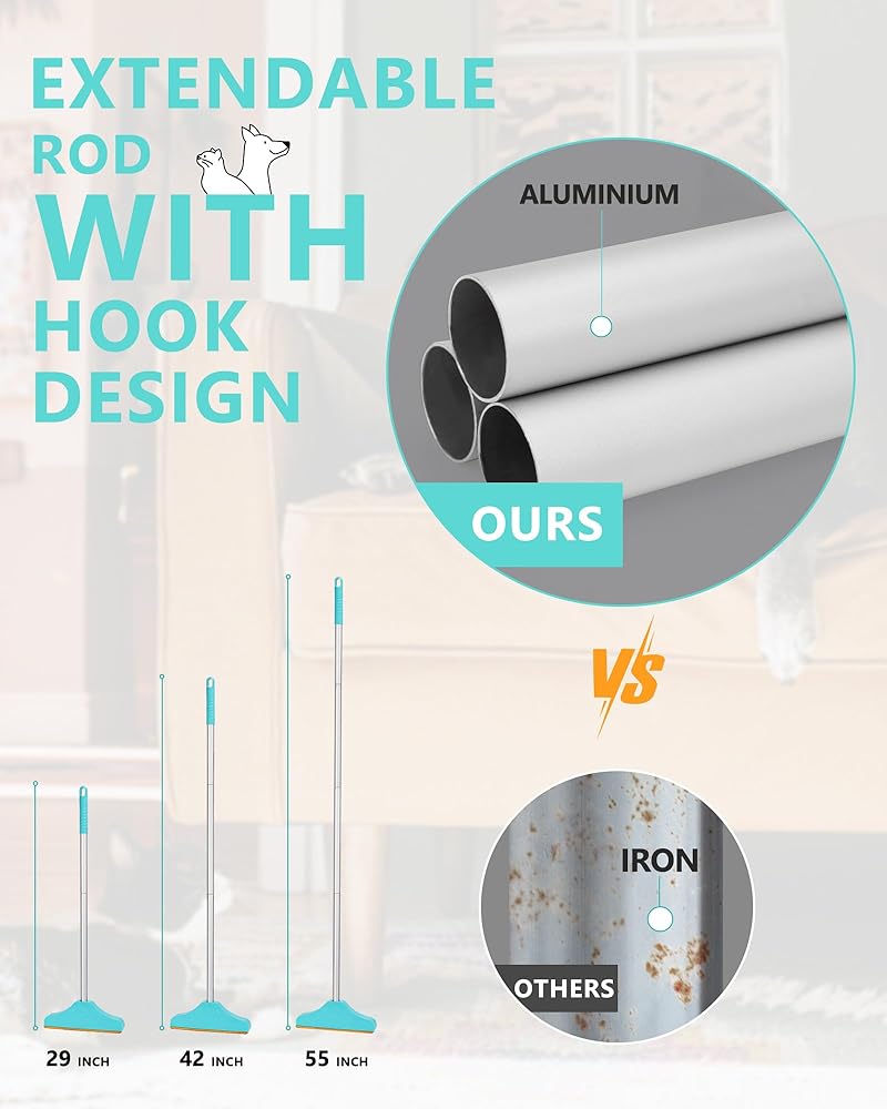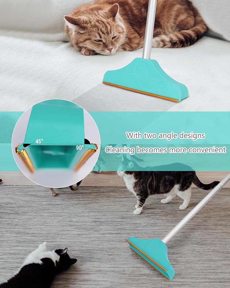 Patented Dual-Angle Head: Unique dual-angle head design allows you to adapt to various cleaning scenarios. Use the 90-degree angle for reaching under sofas and furniture, and switch to the 45-degree angle for flat carpets. Compared to traditional adhesive rollers, our reusable pet hair remover offers superior cleaning efficiency and minimizes waste.