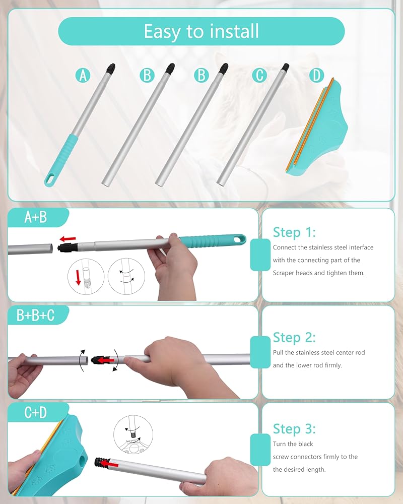 Easy Maintenance: Simply remove the accumulated hair and debris, then rinse it with clean water. It's ready to tackle the next cleaning session.At the handle's end, you'll find a convenient hanging hole. When not in use, hang it in a corner to save storage space.This tool is constructed with multiple connecting sections, allowing you to adjust its length according to your specific needs.
