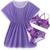 • ❀❀Cover Up Features: Super cute girl swim suit cover up with pompom, v neck, drop shoulders, half sleeves, bat sleeve, open slits up, elastic waist, above the knee, loose fit, bright and airy