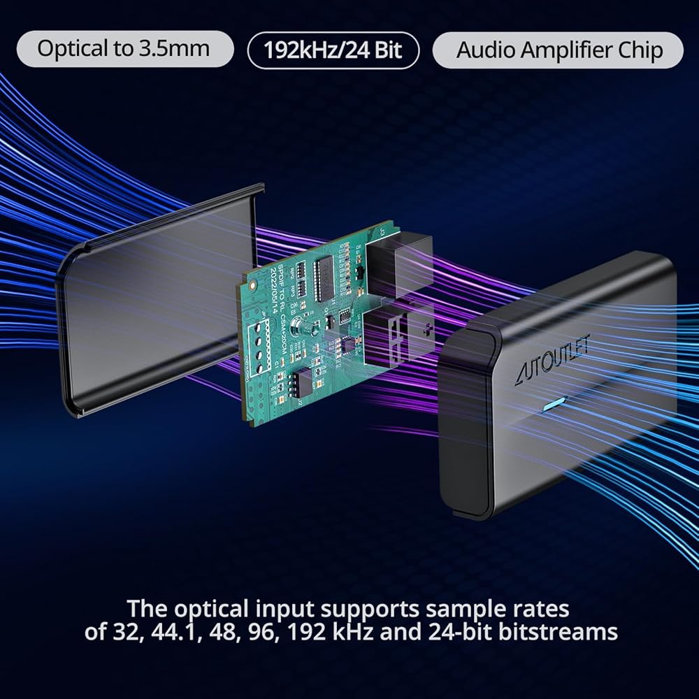 【192KHz&24bit】 This digital audio converter achieves 192KHz/24-bit sound sample rate and supports 32, 44.1, 48, 96, and 192KHz optical inputs and 24-bit data streams for superior audio quality.