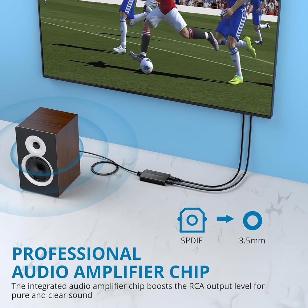 【Plug-and-Play】 Works perfectly with HD TVs, set-top boxes, DVD/Blu-ray players, and game consoles. (NOTE: not compatible with 5.1-channel signals like Dolby AC3, please set audio output to PCM mode before use.)