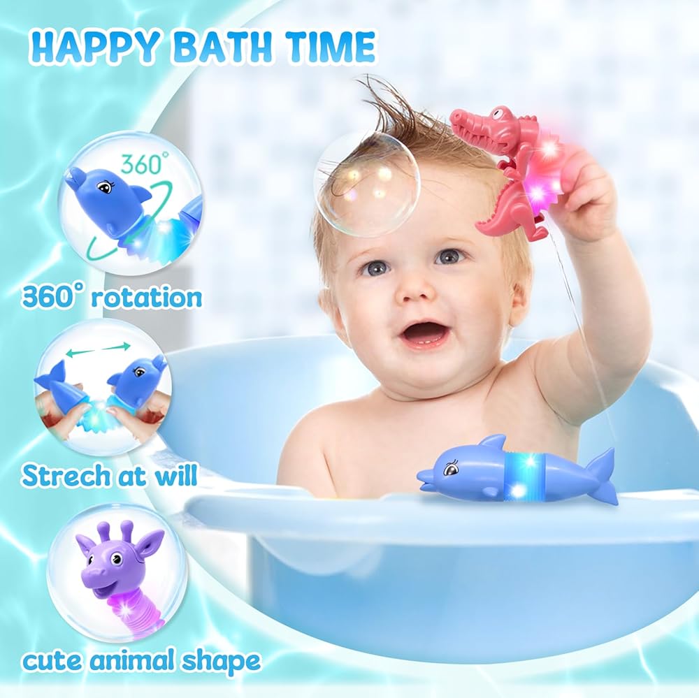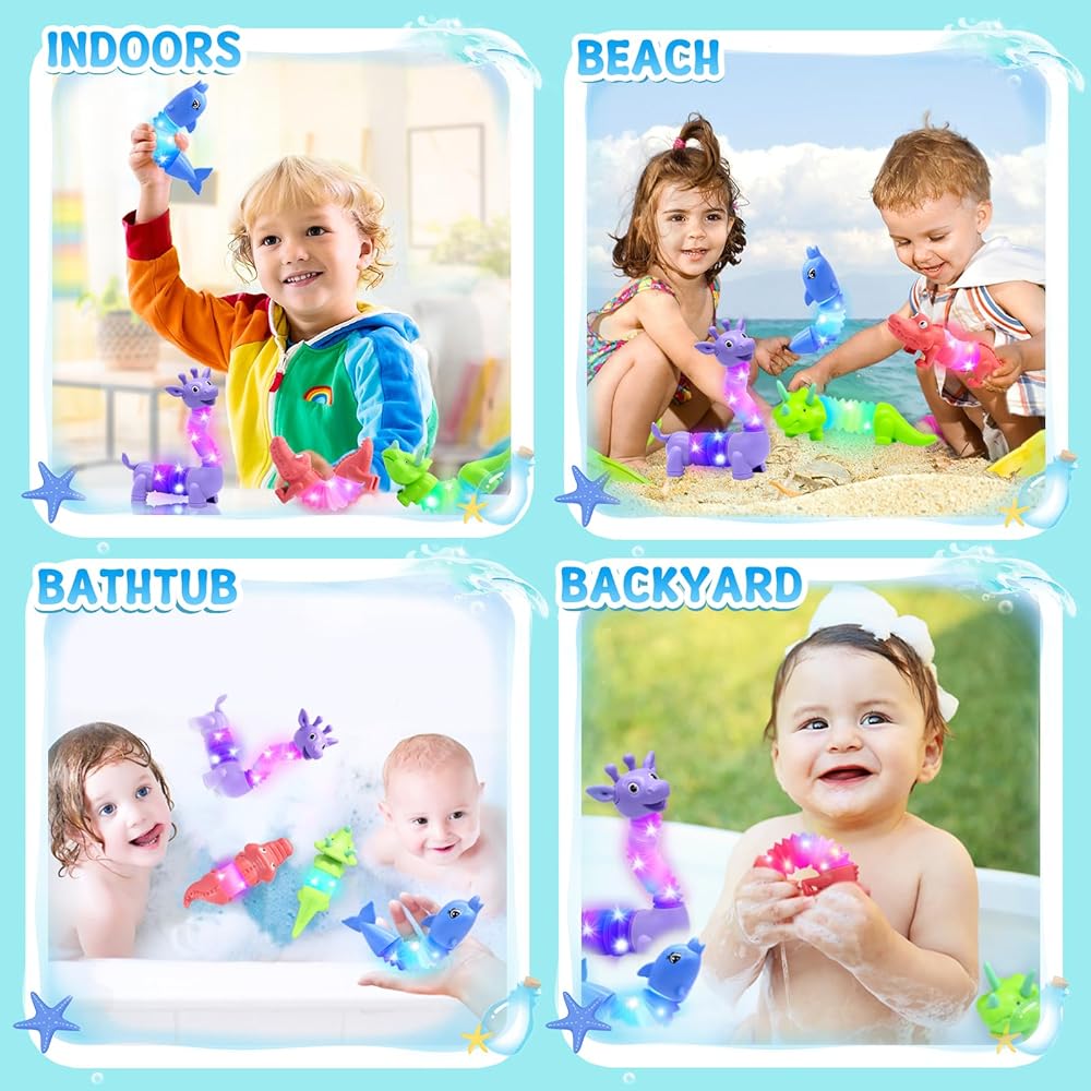 2025 Halloween 4 Pack Animal Light Up Pop Tubes: LED Bath & Pool Toys for Toddlers 1-3, Sensory Fidget Toys for Kids Ages 3-8, Baby 1st Birthday Gifts and Party Favors