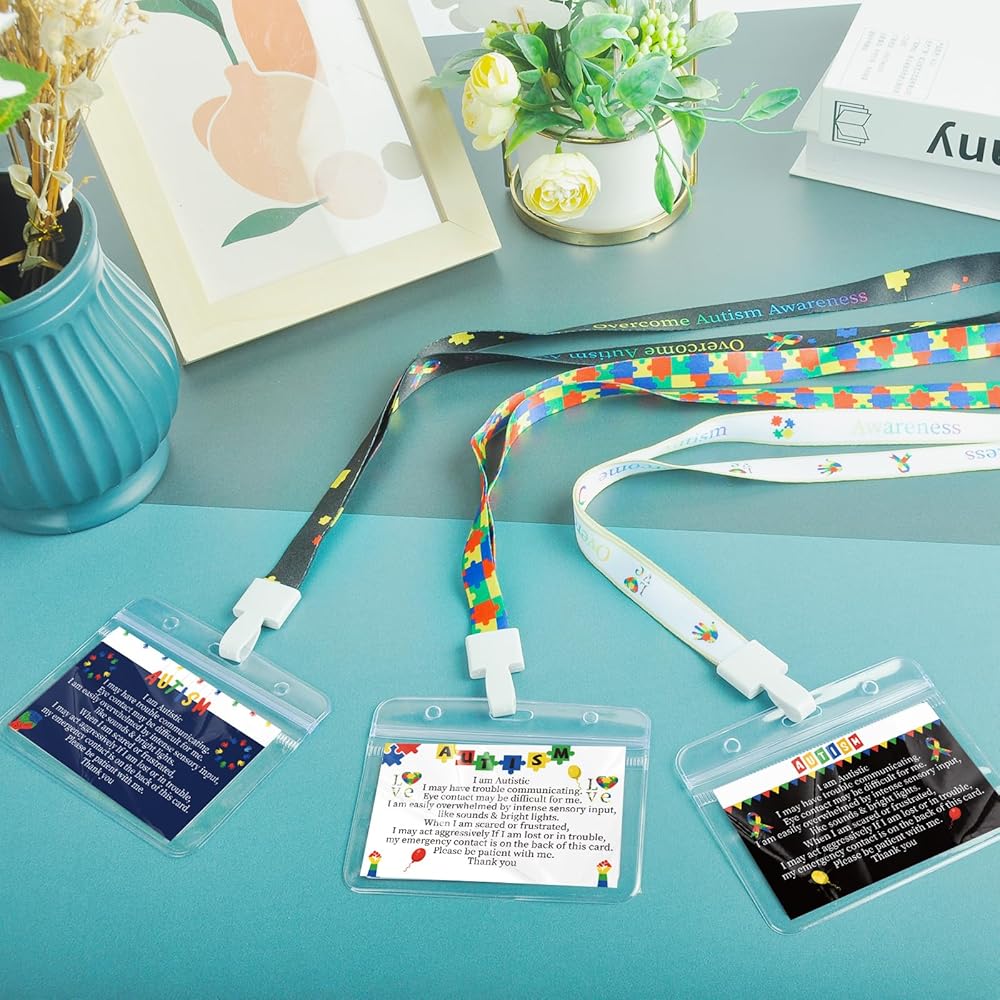 ❤️【𝐌𝐞𝐚𝐧𝐢𝐧𝐠𝐟𝐮𝐥 𝐃𝐞𝐬𝐢𝐠𝐧】The autism awareness lanyard and autism cards feature autism puzzle pieces and unique pattern designs, in various colors, red, blue, yellow, and green, which is a symbol of Autism. We should achieve mutual respect, understanding, and care between people with autism and ordinary people.