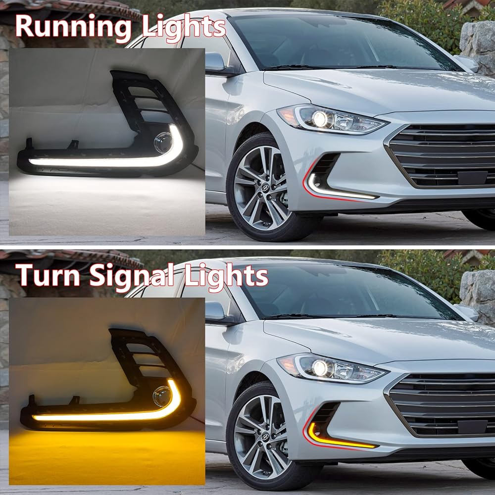 Outstanding Apperance : 2017 2018 Hyundai Elantra LED Fog Lights DRL that give your car the Enhancing Style and a totally Different Look. White Lights for Daytime Running Lights , amber lights for Turn Signal Lights .