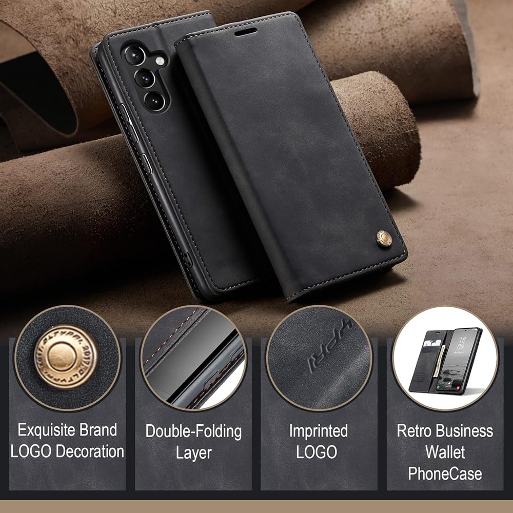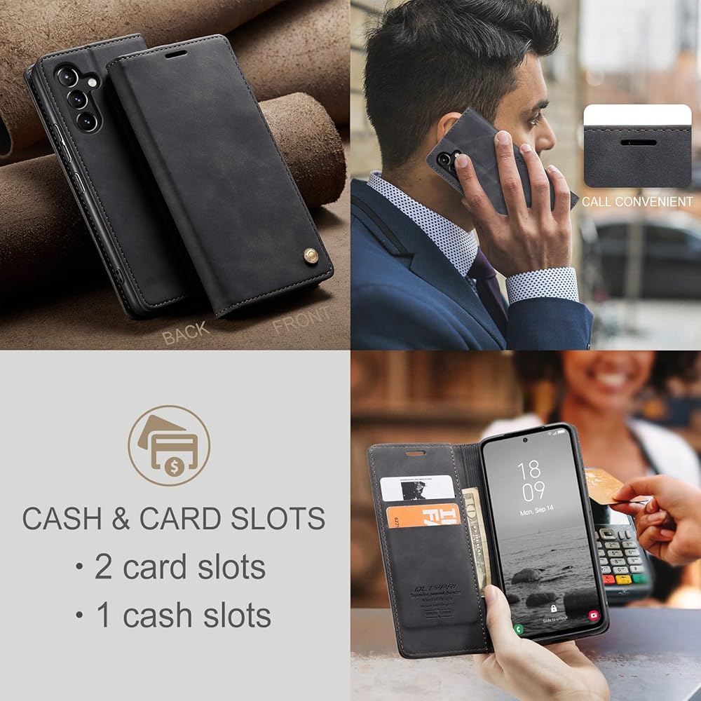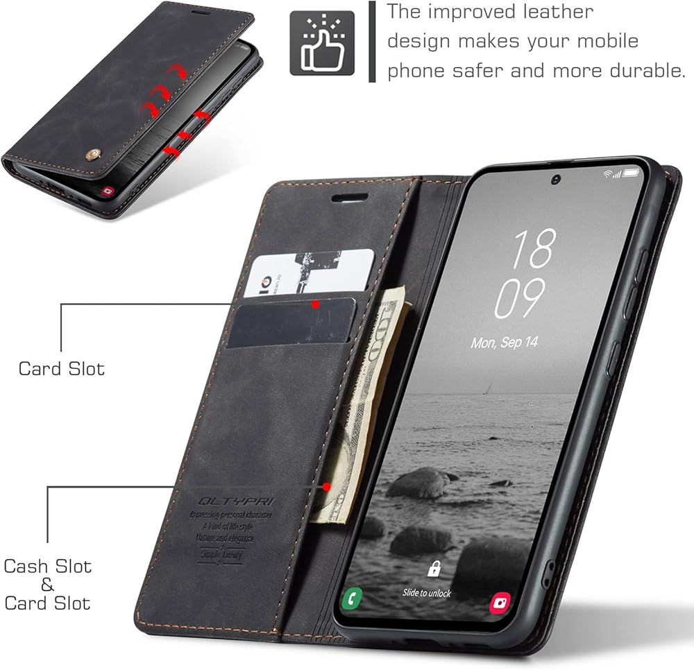 QLTYPRI Case for Samsung Galaxy A15 4G/5G, Vintage PU Leather Wallet Case Card Slot Kickstand Magnetic Closure Shockproof Flip Folio Case Cover for Samsung Galaxy A15 - Black