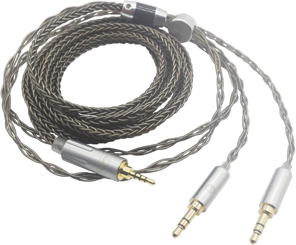 Youkamoo 2.5mm 8 Core Braided Silver Plated Replacement Cable Compatible for Hifiman HE4XX, HE-400i Headphones 2.5mm to Dual 3.5mm Male