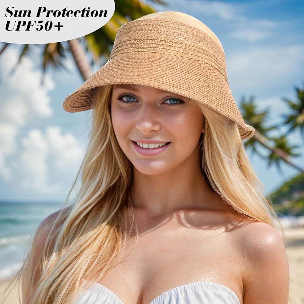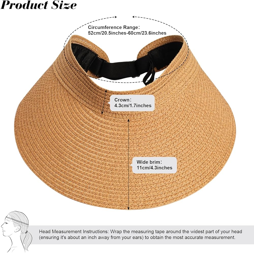 Exquisite Sun Protection: Crafted from natural straw with meticulous handwoven details, this beach visor hat ensures optimal sun-shielding capabilities. The 4.3'' brim shields your eyes, face, and neck from direct sunlight while maintaining a stylish look.