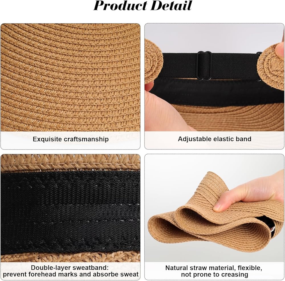 Comfortable and Portable Design: Designed for a comfortable fit, this straw visor hat features a double-layer sweatband and an adjustable elastic band for customization. With a highly flexible brim, it easily rolls into a compact form, secured by an elastic band. This makes it a versatile and portable accessory for everyday wear and travel. Ideal for various activities and a thoughtful gift for special ones.