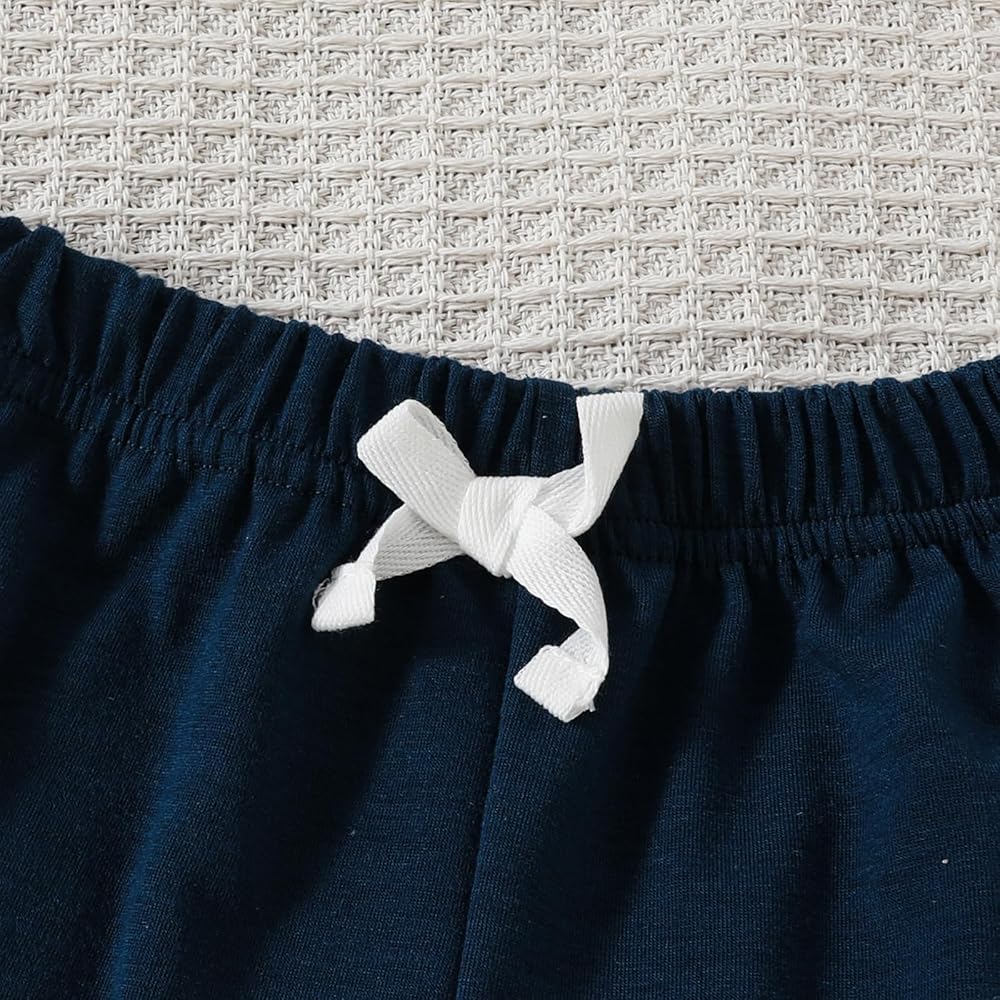 Toddler Boys 4th of July Shorts Sets Short Sleeve Letter Embroidery Tops Solid Color Shorts Sets