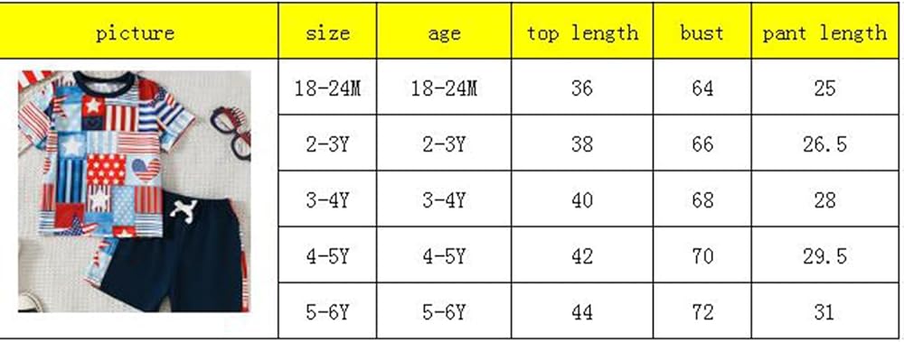 18-24M Tops Length: 14.96 Bust: 23.23 Pants Length: 10.83 Waist: 16.54 Advised Age: 18-24 Months