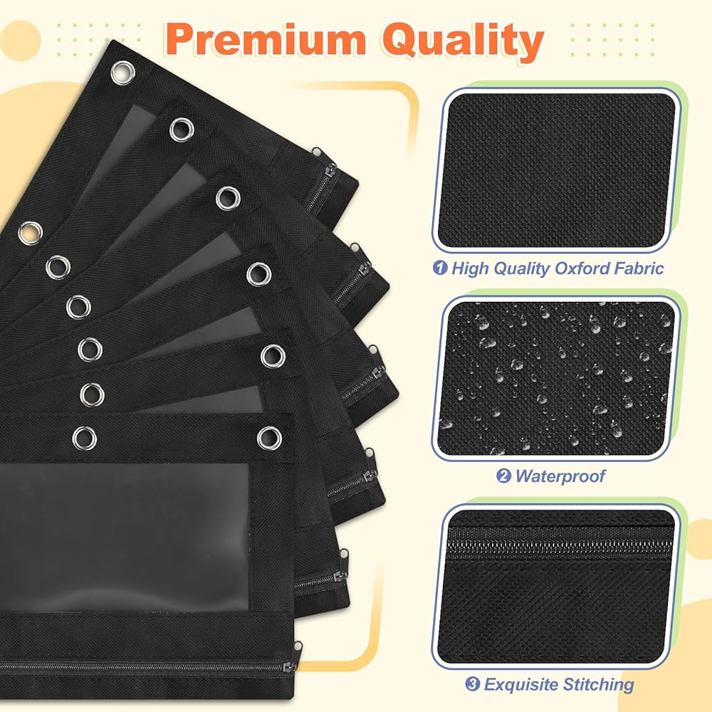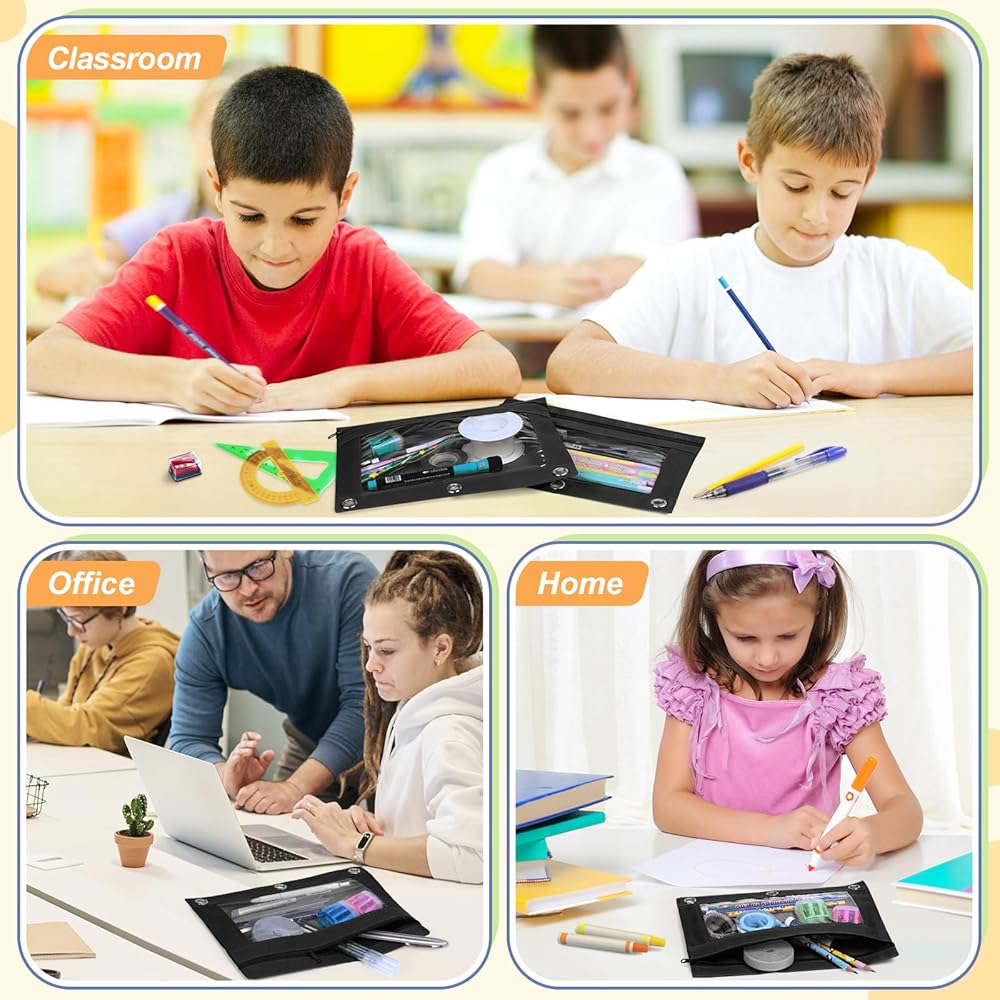 Pencil Pouches for 3 Ring Binders- Each zipper pencil pouches measuring about 9.8 inches x 7.1 inches, with 3 rivet holes designed, fit in standard 3 ring binders, can be placed in folders. Ideal for storing basic writing utensils such as pencil, markers, scissors and more. Also perfect size for place in the bag, very portable.