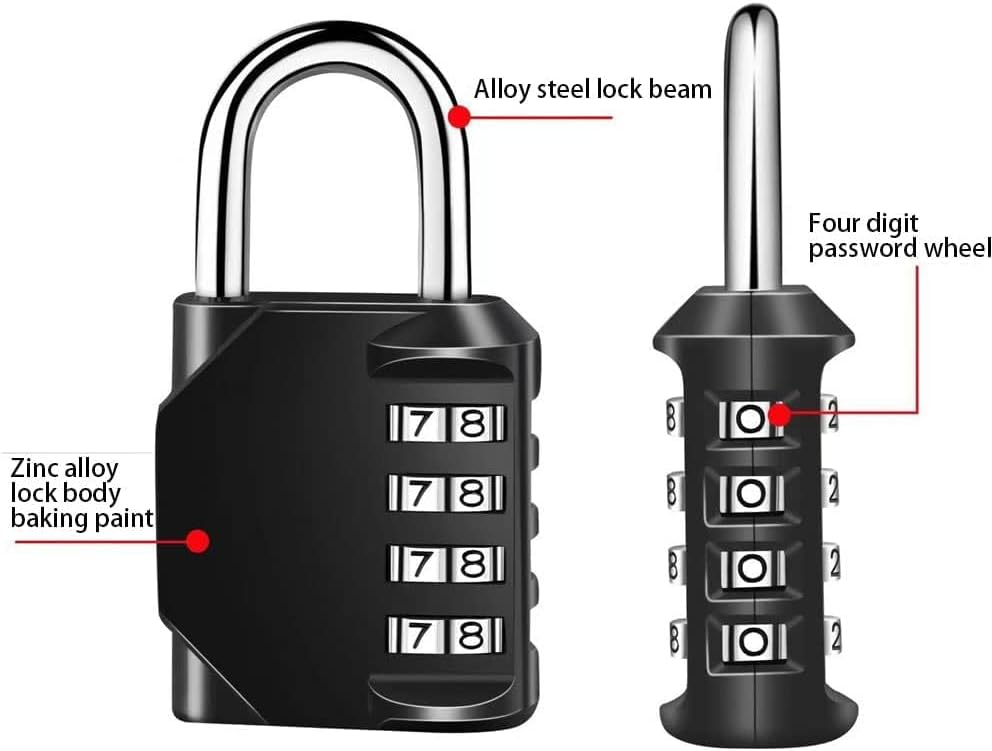 Gym Padlock, 4 Digit Outdoor Waterproof Resettable Combination Padlock for School Gym Locker(1 Pack Black)