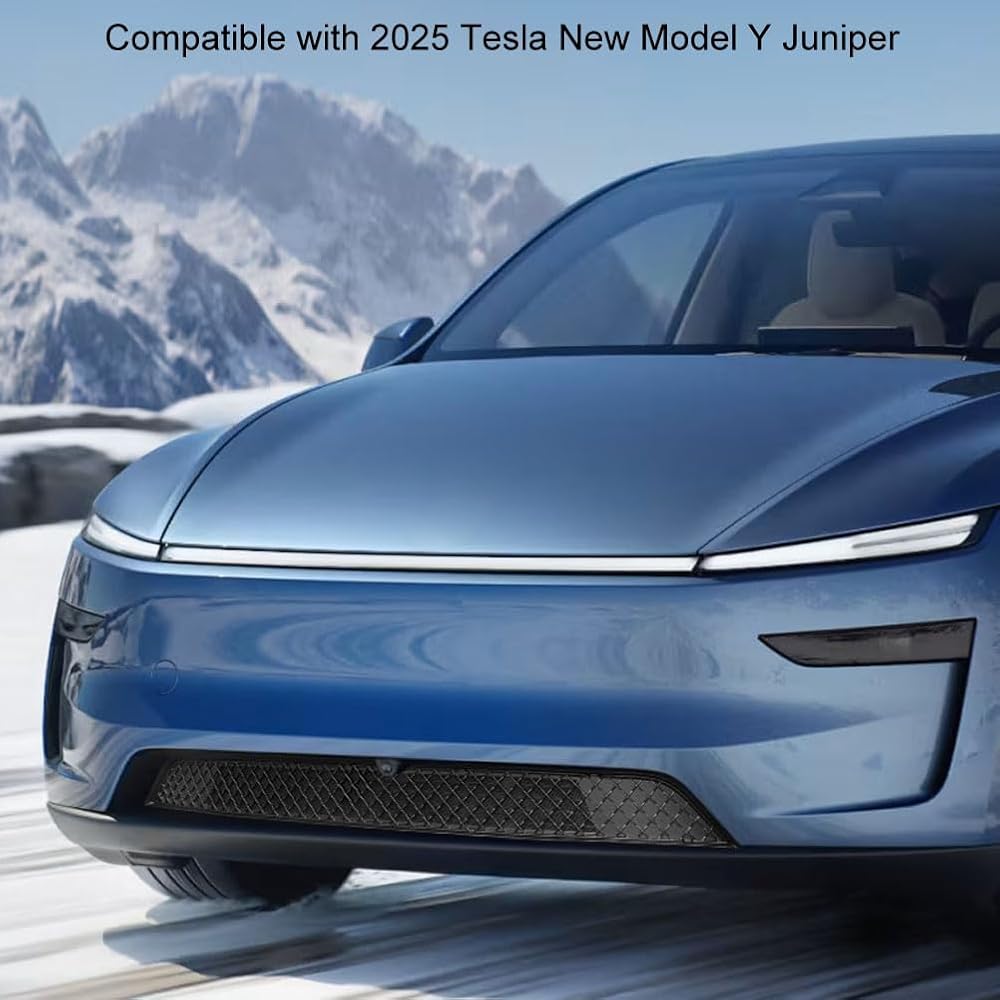 Fit 2025 2026 Tesla Model Y Juniper Accessories Front Grill Mesh Grille Grid Inserts Air Inlet Vent Grille Cover Replacement with Removable Mesh (ABS Bright Black, Upgrade Detachable Version)