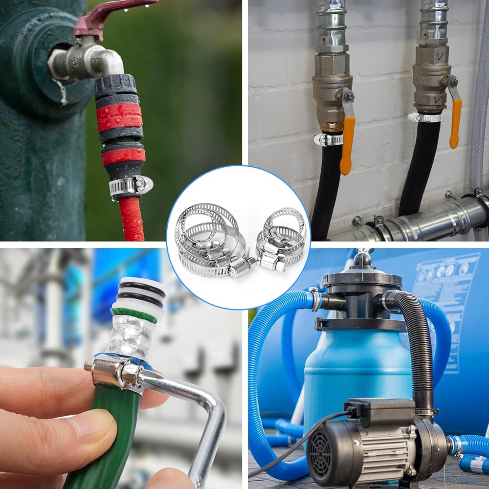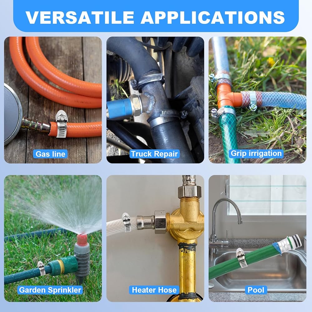 VERSATILE APPLICATIONS:This hose clamp set is designed specifically for a wide range of applications,Perfect to apply in home,automotive,industrial, gas line, drip irrigation, garden sprinkler, pool,dryer, radiator, heater hose, truck repair, boat, mechanical, electronic etc.