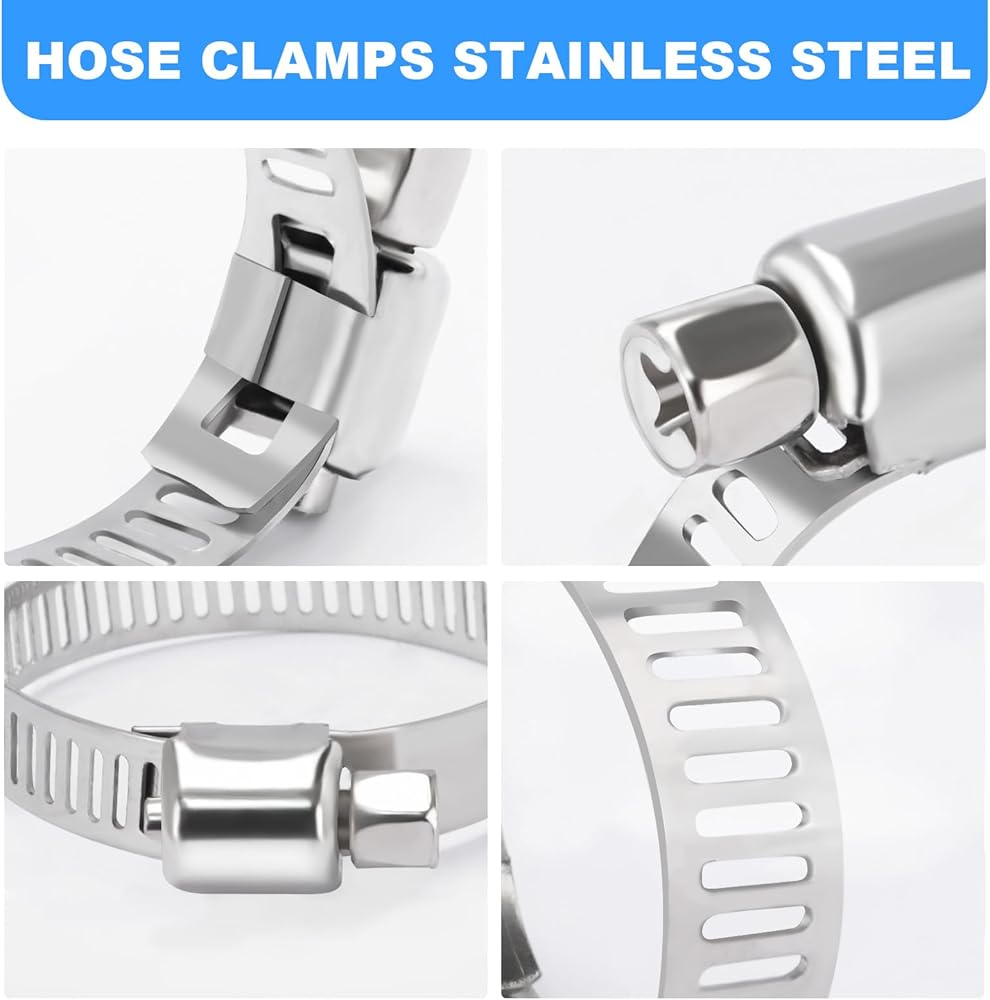 ADJUSTABLE SIZE AND FLEXIBILITY:Our worm gear hose clamps adjustable from 5/16 inch-2 inch (8-51mm).demonstrating excellent flexibility and extensibility,You can use a screwdriver to adjust the size according to your needs.