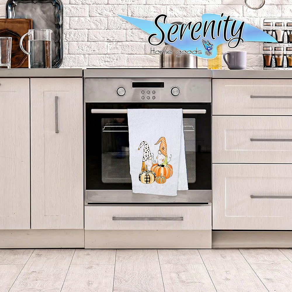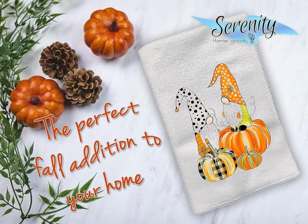 Fall Festival decorative hand and dishes towel. No house is complete without a decorative hand and dishes towel to hang in the bathroom or on the oven. Our unique line of terry hand towels are sure to please for years to come. Use them for dishes, to dry your hands, as napkins, a place mat, the options are endless! These bathe and stove towels make the perfect housewarming gift for the newlywed bride and groom, a just because for that special someone, or a low cost Christmas present. Mom, dad, aunt, sister, grandma, niece, neighbor will all love this thoughtful surprise. Hand towels measure 16 inches by 24 inches. Serenity Home Goods is a family owned and operated business bringing our own touch of peace in to your home. Be sure to check out our line of cards, ornaments, mugs, wall art, and many other great additions to your everyday life.