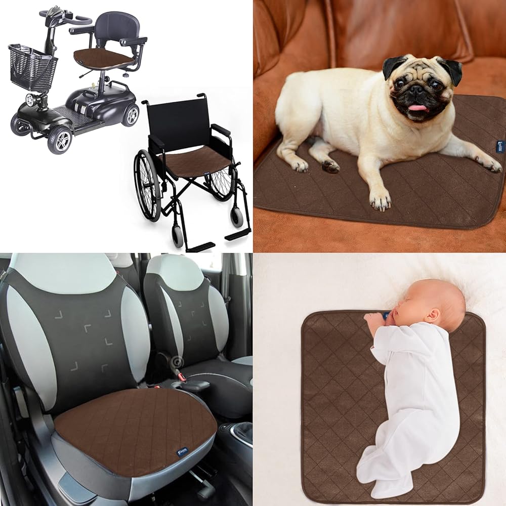 Multipurpose: 22" x 21" Sized reusable incontinence pad can help protect car seat, sofa, lift chair, wheelchair, or any seating surface from uncontrolled bladder or urinary problems in men, women, kids, or elderly or people with reduced mobility.This waterproof chair pads for incontinence washable can be washed over 300 times without losing absorbency and softness.