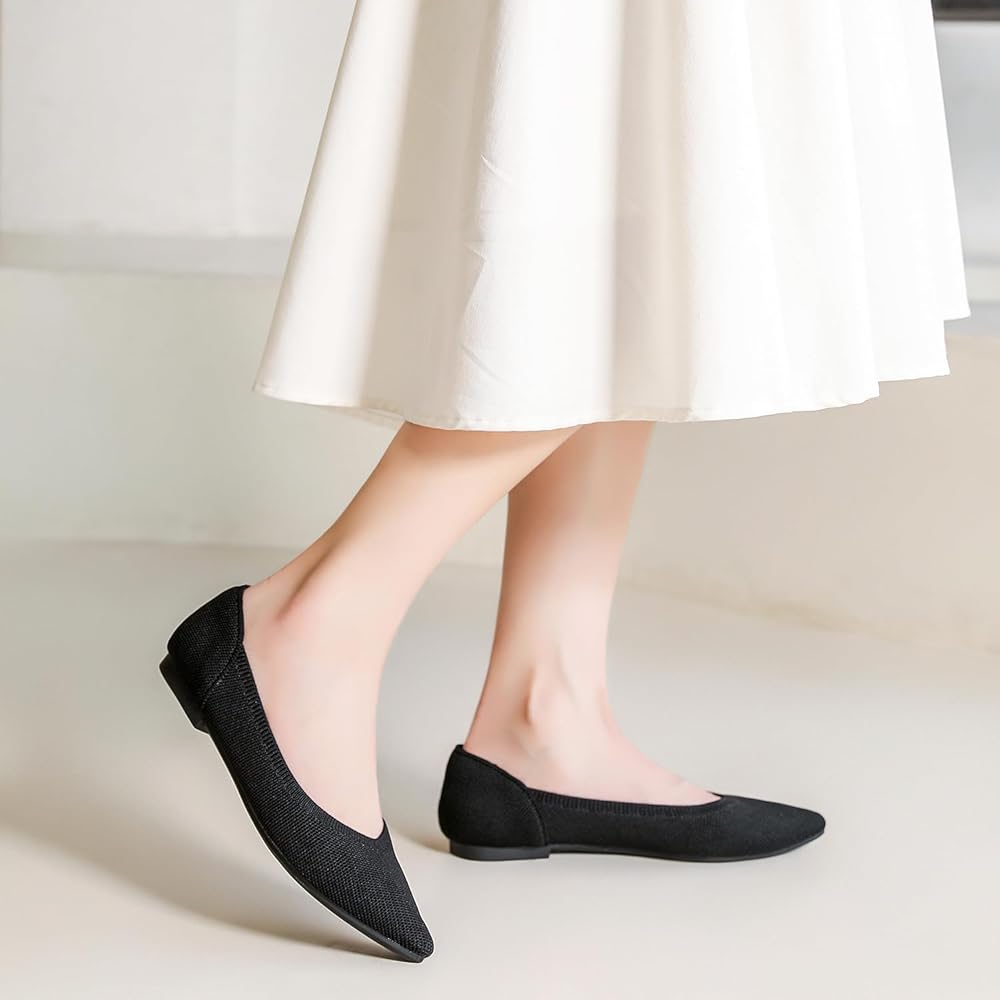 【Basic Information】 The slip-on ballet flats have pink, black, blue, and other colors to choose from; crafted from a knit fabric upper, selected comfortable footbed, and upgraded rubber soles, are more slip-resistant and wear-resistant.