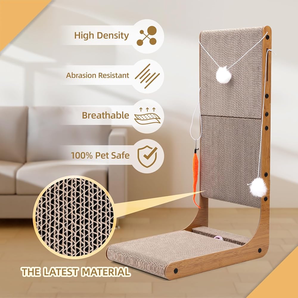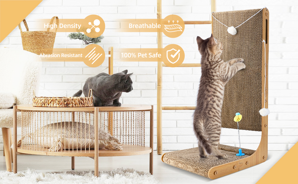 【PREMIUM QUALITY MATERIAL】: Made of eco-friendly and non-toxic corrugated paper, no harmful substances. Absolutely safe for cats. Thickened and high density corrugated cardboard is more sturdy and durable.