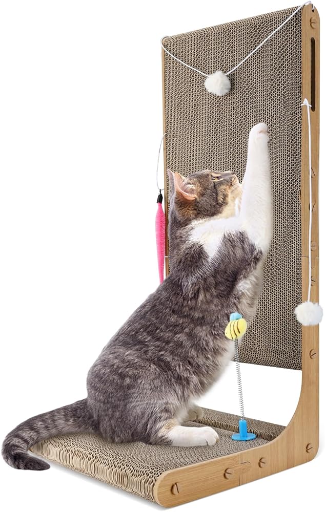 Cat Scratcher, 29.5 Inch Large Size L Shape Cat Scratch Pad, Cat Scratching Cardboard with Cat Toy for Indoor Cats, Protecting Furniture Cat Scratch Pad