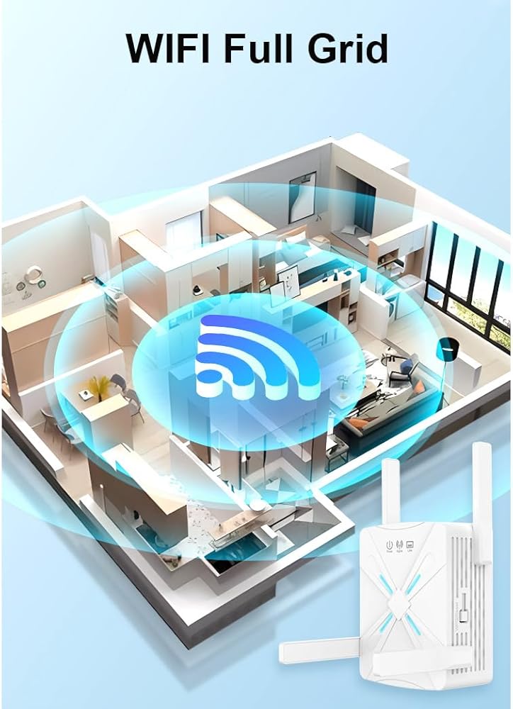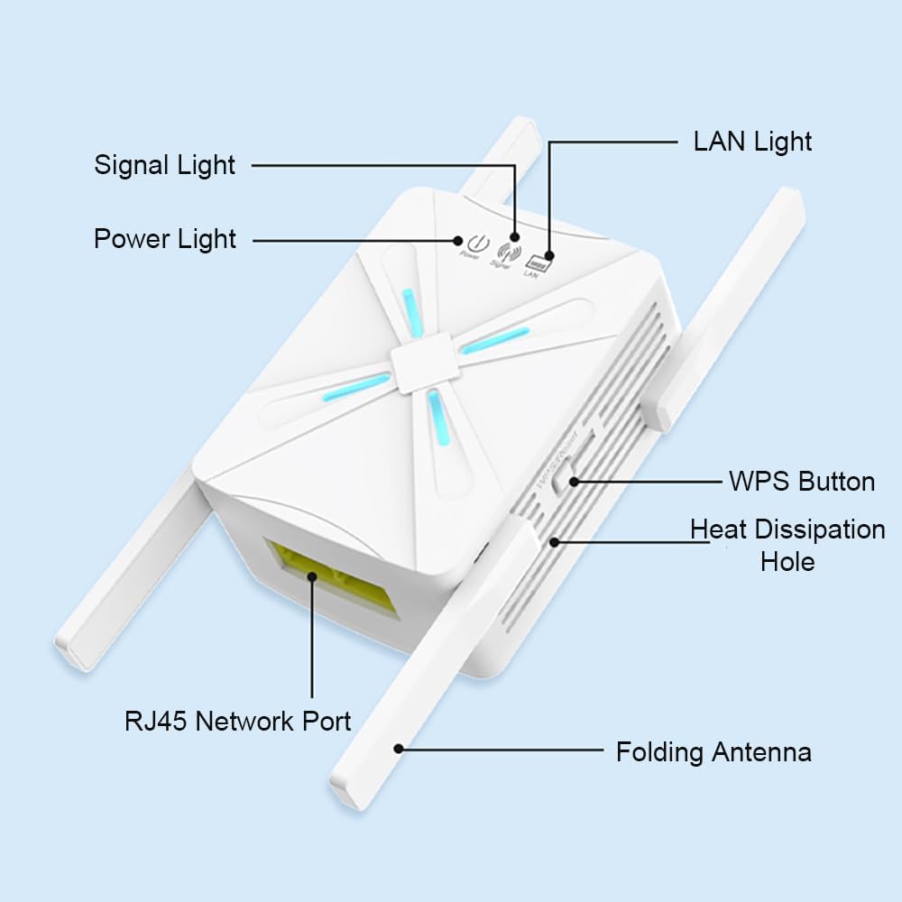 Introducing our latest 2024 WiFi Extender, designed to revolutionize your home connectivity experience. With cutting-edge dual-band technology, this extender delivers an impressive 1200Mbps high-speed stable signal on both 2.4GHz and 5GHz frequencies, ensuring seamless internet access throughout your entire home. Setting up the extender is a breeze - simply press the WPS button or use the user-friendly web browser interface on your smartphone, tablet, or PC (192.168.188.1). No complicated steps or technical expertise required, thanks to our straightforward user manual. Experience full signal coverage with four high-gain external antennas covering 360 degrees. Say goodbye to dead zones as you extend WiFi coverage to every nook and cranny of your house, from bedrooms and floors to the garage, basement, and garden. Enjoy stable data transmission for activities such as video streaming, 4K videos, and gaming. Your network security is our top priority. Our powerful 1200Mbps WiFi extender, equipped with a 2.4/5GHz processor, maximizes network security, ensuring your safety and protecting against unauthorized access and data theft. Enjoy worry-free internet usage without concerns about privacy issues or interference. Versatility is key with Repeater Mode for extending WiFi coverage, AP Mode for converting a wired network to wireless, and two Ethernet ports for connecting wired devices such as smart TVs and desktops. Ideal for home, company, and travel use, our WiFi extender offers the utmost convenience and flexibility. Elevate your home connectivity with our 2024 WiFi Extender - the perfect solution for a faster, more reliable, and secure internet experience.