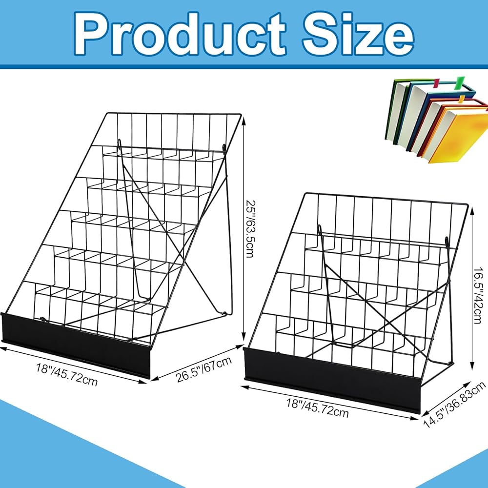 You will receive 1 piece of 4 tiered wire display and 1 piece of 6 tiered wire display, suitable for displaying books, magazines, brochures, cards and candy, satisfying your multiple demands.