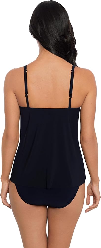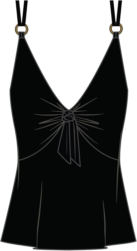 Uniquely flattering swimsuit style provides allover slimming & shaping to whisk away trouble spots. Removable soft cups offer added support for most bust sizes. V-neckline design is universally flattering. Adjustable tie front also has sleek ring hardware at straps and an adjustable front tie for versatility.