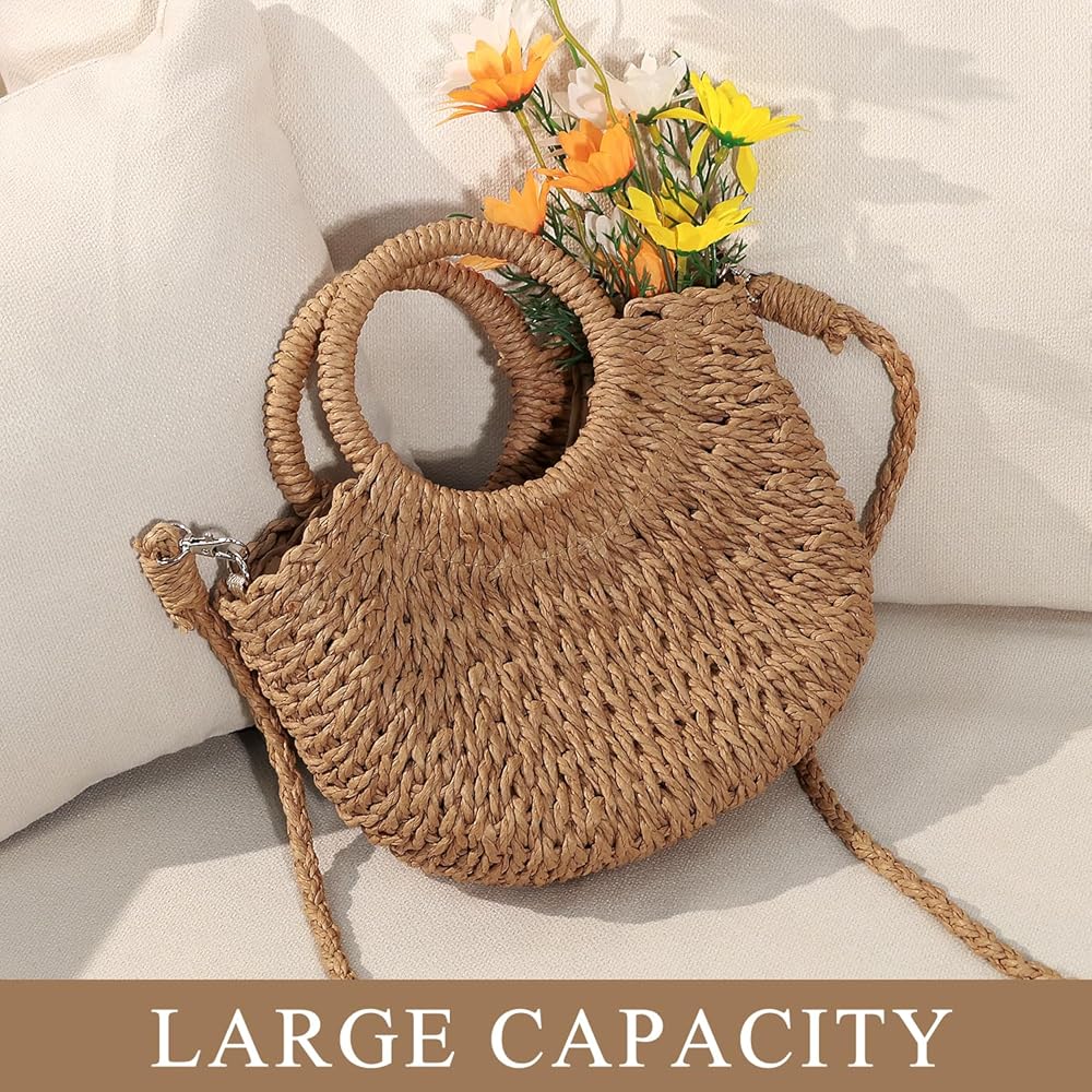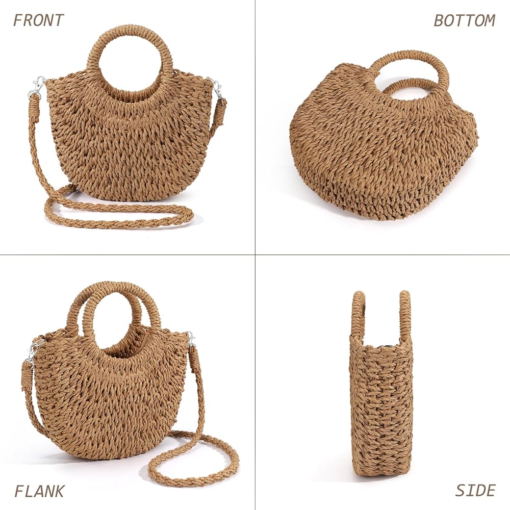 【Simply and Elegant Design】The straw tote bag for women feature with half moon design and drawstring closure, and classic solid color, is perfect for pair with your clothes, will make you more attractive and charming