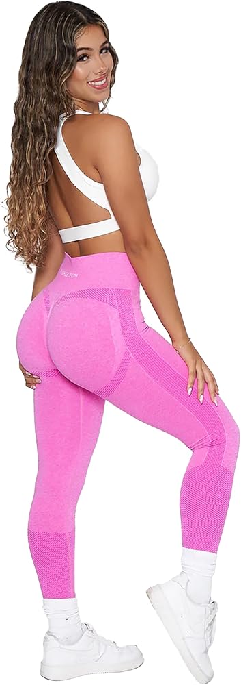 STAY IN PLACE WORKOUT WEAR: Don't let constantly adjusting your leggings distract you from your workout. Our high-waisted and seamless design ensures that these leggings stay put no matter how intense your workout is. You can focus on your fitness goals without any distractions or interruptions. Our leggings are also made with breathable and moisture-wicking fabric to keep you cool and dry no matter how much you sweat.
