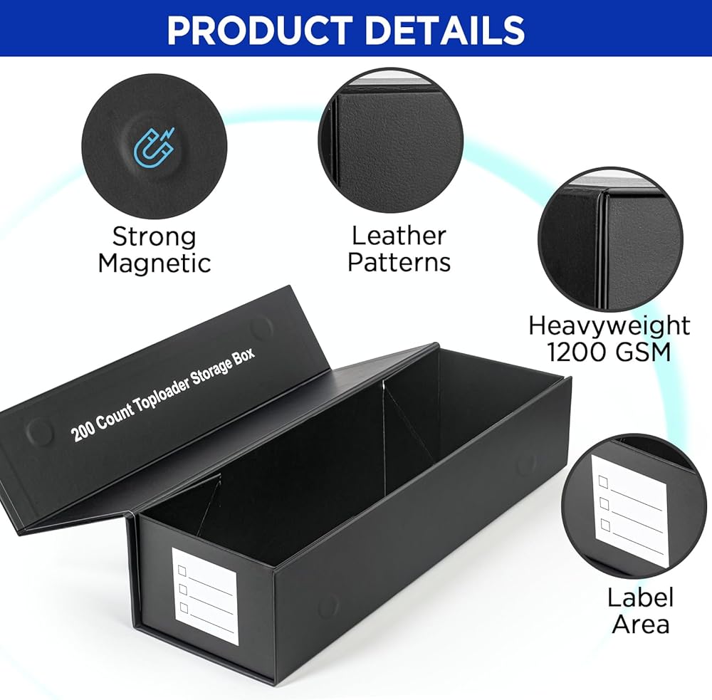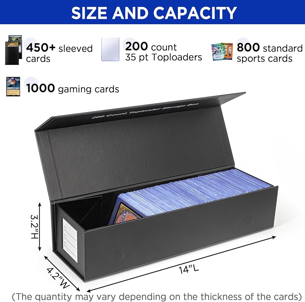 Large Capacity: Each trading card storage box fits 800+ standard sports cards or 1000+ gaming cards. In addition, the baseball cards storage box is also large enough to fit Toploaders. (Each box can hold around 200 count toploaders).