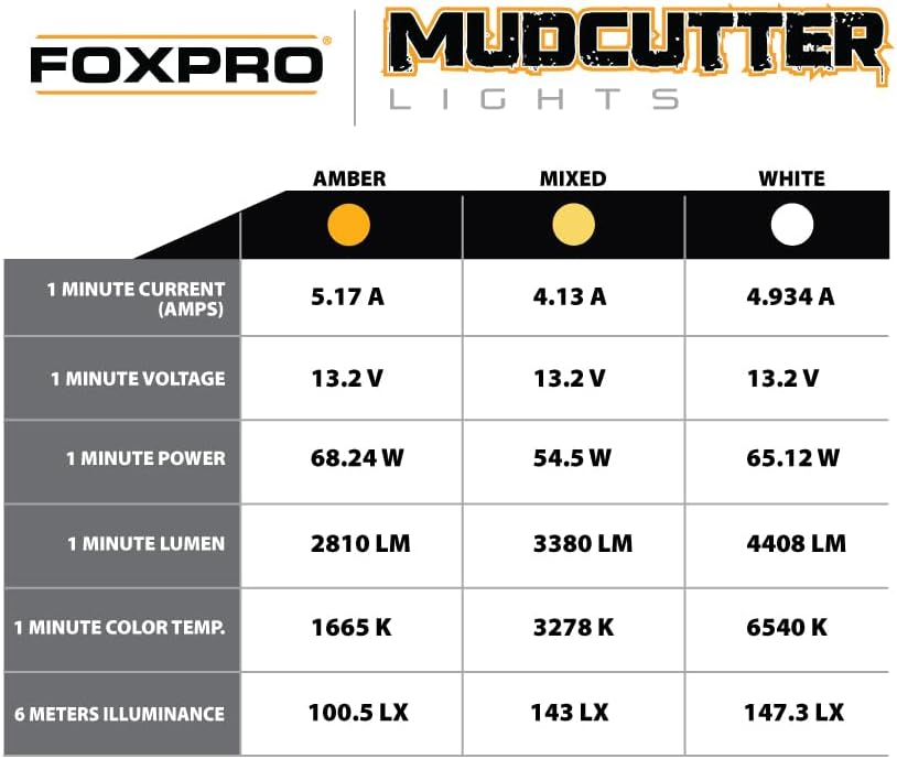 The FOXPRO Mudcutter Light Kit is the most advanced and user-friendly LED bowfishing light system on the market. The Mudcutter Light Kit allows bowfisherman to customize the light intensity and hue, ranging between 2000K to 6000K, which can be done via the wireless remote control or the hard-wired rheostat. Depending on water conditions, whether murky or clear, different hues of white light will penetrate better. The Mudcutter is as easy as pressing the on/ off button and using the gradual light color change buttons to select your desired hue and the brightness up and down buttons to select your desired light intensity. Instant full white, full amber, and full mixed buttons are also provided for your convenience. Mudcutter lights are designed to operate two banks from 1 remote. So if an additional kit is purchased, they can both be operated independently from the same remote. Mudcutter lights run on a battery (12V DC Only) or generator (110V AC / 120V AC). The Mudcutter Light Kit is backed by a 2-year warranty and FOXPRO's unmatched customer support.